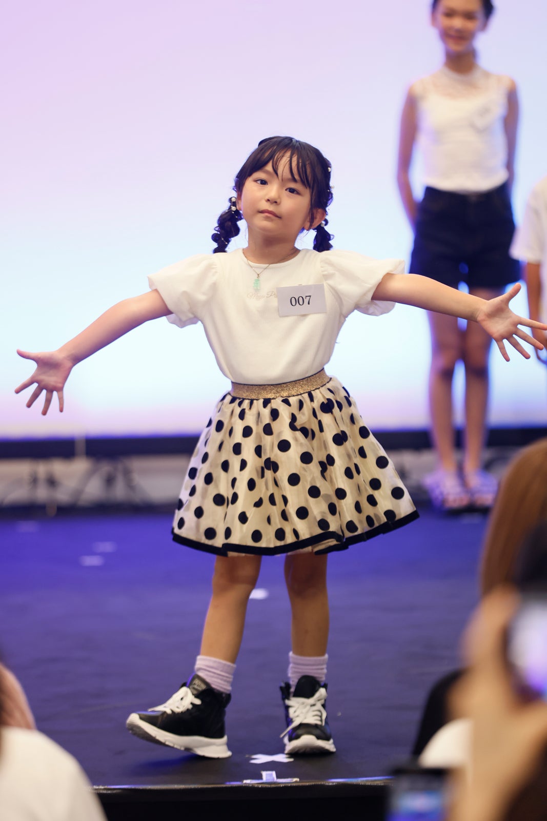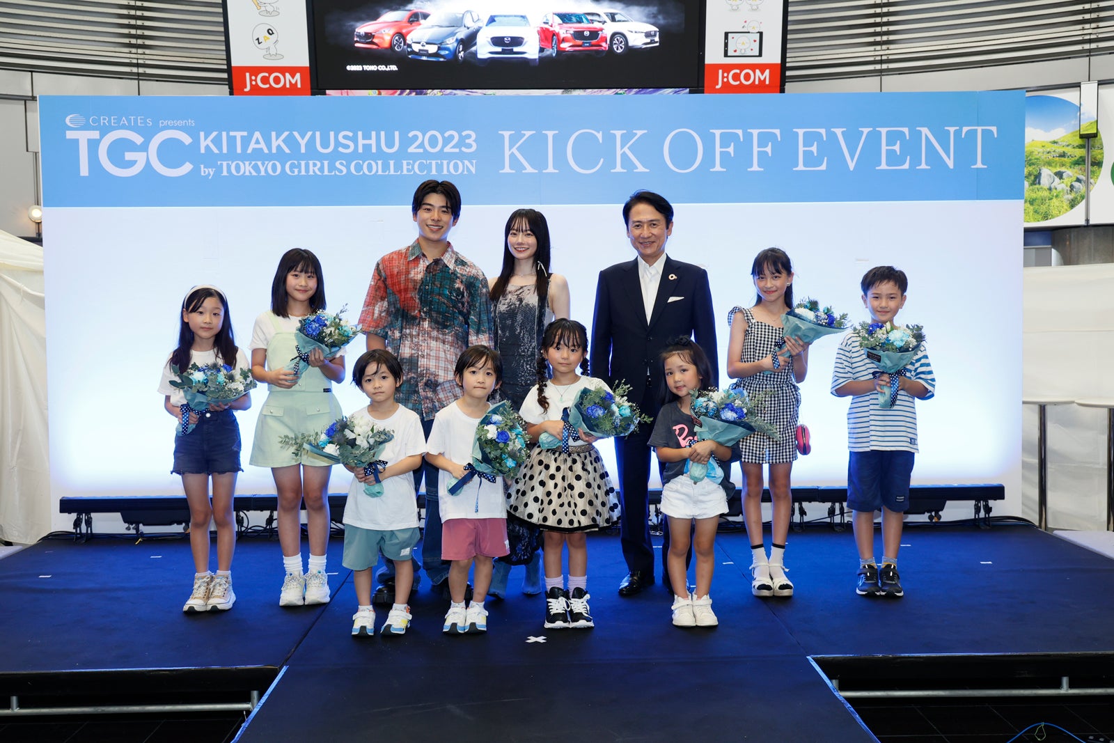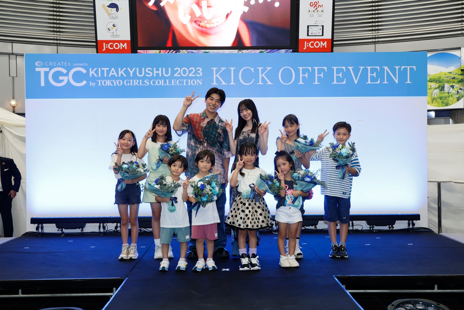 TGC北九州の新たな歴史の幕開けを記念して、北九州市の「福岡のキッズに、ランウェイを歩く機会を。」という思いのもと、地元・福岡県在住の5~12歳(※応募時の年齢)のキッズを対象に募集をした「TGC KITAKYUSHU 2023 キッズモデルオーディション」には、約150人ものキッズが応募。審査を通過した15人のキッズが公開最終審査に参加し、1日15万人が訪れる小倉駅の中心「JAM広場」にて、ウォーキングを披露。「TGC 北九州 2023」に出演する8人のキッズモデルが決定し、福岡県産の花束が贈呈された。