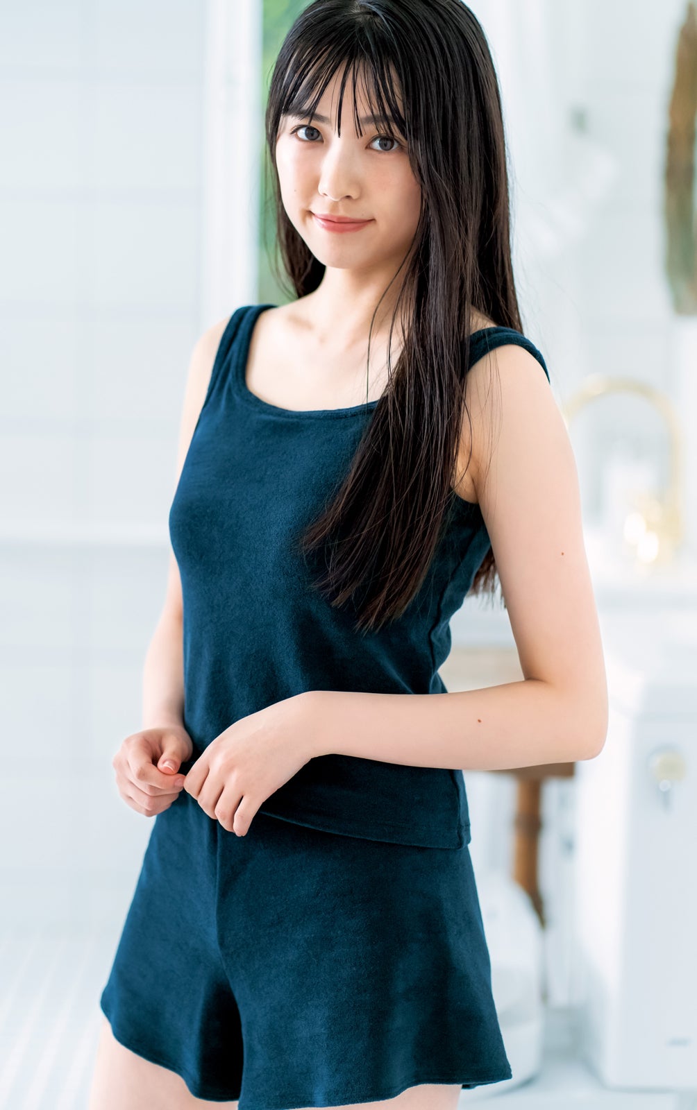 現在「ラブライブ!スーパースター!!』に出演し、過去に準ミス・ワールド2021日本代表にも選ばれたことがある結那。誌面では、大きめのシャツを着てベッドの上でゴロゴロする姿や、海辺で楽しそうにはしゃぐカットなどが収められている。