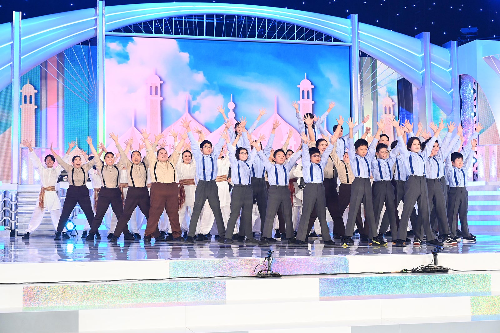 「イッテQ!」女芸人のいとうあさこ、森三中、椿鬼奴、ガンバレルーヤ、川村エミコ(たんぽぽ)、おかずクラブ、やしろ優、バービー(フォーリンラブ)と、横浜市立ろう特別支援学校の小中学生17人、日本随一のダンス力を誇る東京都立狛江高校ダンス部33人が、インド映画「RRR」でも話題になった超高速ナートゥダンスを、両国・国技館で小中学生の保護者の皆様が見守る中、披露した。まずは小中学生17人のシンクロダンスから。そこに女芸人12人、続いて狛江高校ダンス部33人が加わっていく。小学生と女芸人によるペアダンス、中学生と女芸人がサスペンダーを使ったダンスを披露するなど盛りだくさんの構成。最後は62人が全員揃って迫力満点のパフォーマンス。