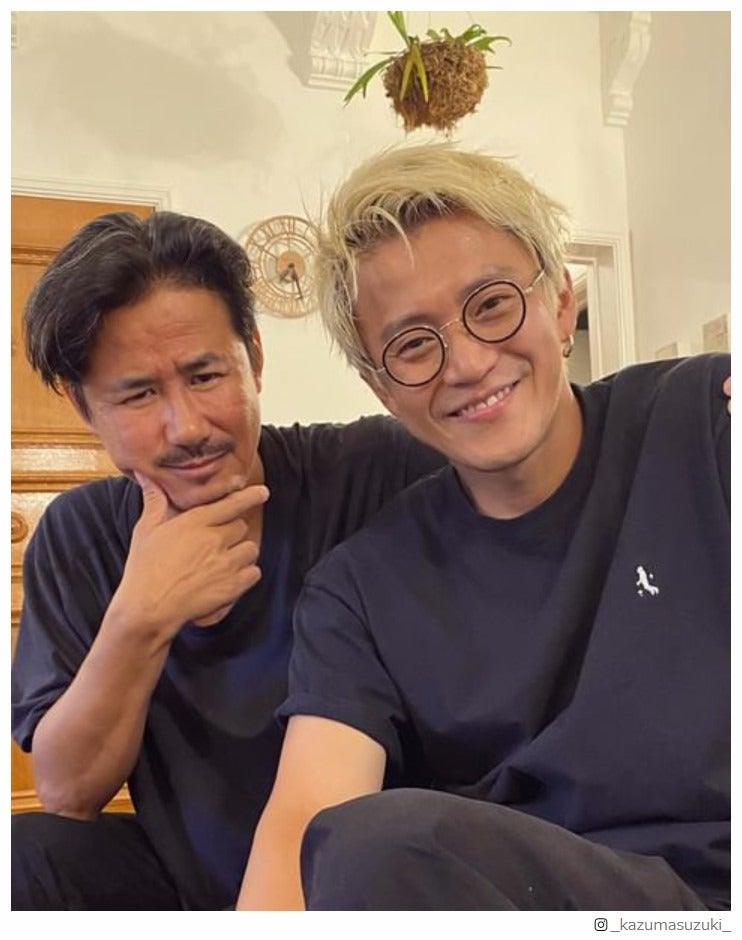 小栗旬、妻・山田優と“お揃い”金髪ショット披露「4年振り」再会の鈴木一真が投稿