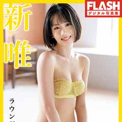 貴島明日香、美バストチラリ&大胆スリットワンピ姿で「FLASH」初表紙