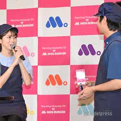 同限定AR動画の注目ポイントを聞かれると、北川は「ちょっぴりあざといです」と答え「普段、グループの中ではあざといほうではないんですけど、今回の撮影がそれぞれシチュエーションがあって、私はお店で同級生の男の子と遭遇する感じで、『や・く・そ・く!』ってあざとく、どんな風に可愛くいこうかとスタッフさんを相談したので、あざとさに注目していただけたらなと思います」と笑顔を見せ、“まりあんLOVEりんです”と答えた牧野は「動画内で両手人差し指でほっぺに刺すポーズをしているので、ぜひモスバーガーを食べる前にあなたも一緒に“まりあんLOVEりんです”をしてから食べていただけると嬉しいなと思います」とお願いした。(modelpress編集部)