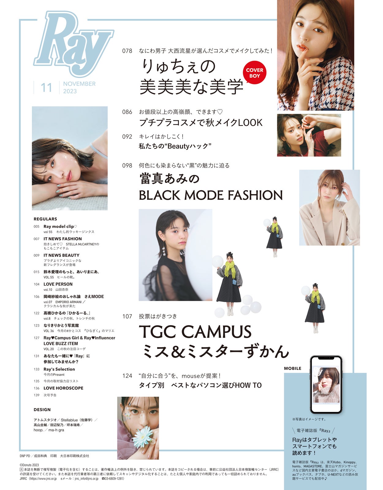 「レトロなスズキ沼。」では、通常版のカバーを飾ったRayのエースモデル・鈴木愛理がビジュ映え確実なレトロ服に身を包んで登場。また、ファッションに欠かせない万能なブラックコーデを女優の當真あみが紹介。さらに、連載企画「LOVE PERSON」には、女優の山田杏奈が登場する。(modelpress編集部)