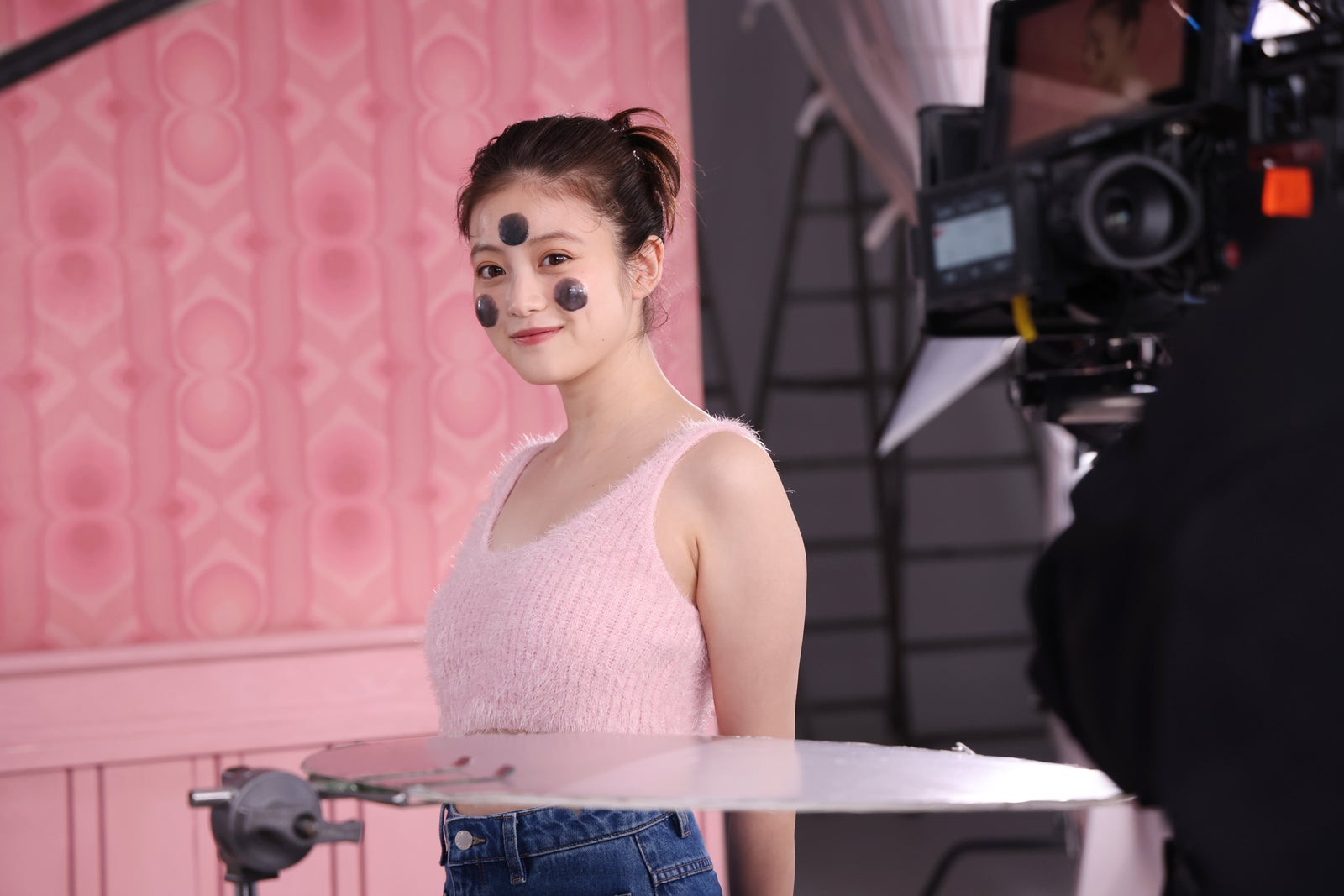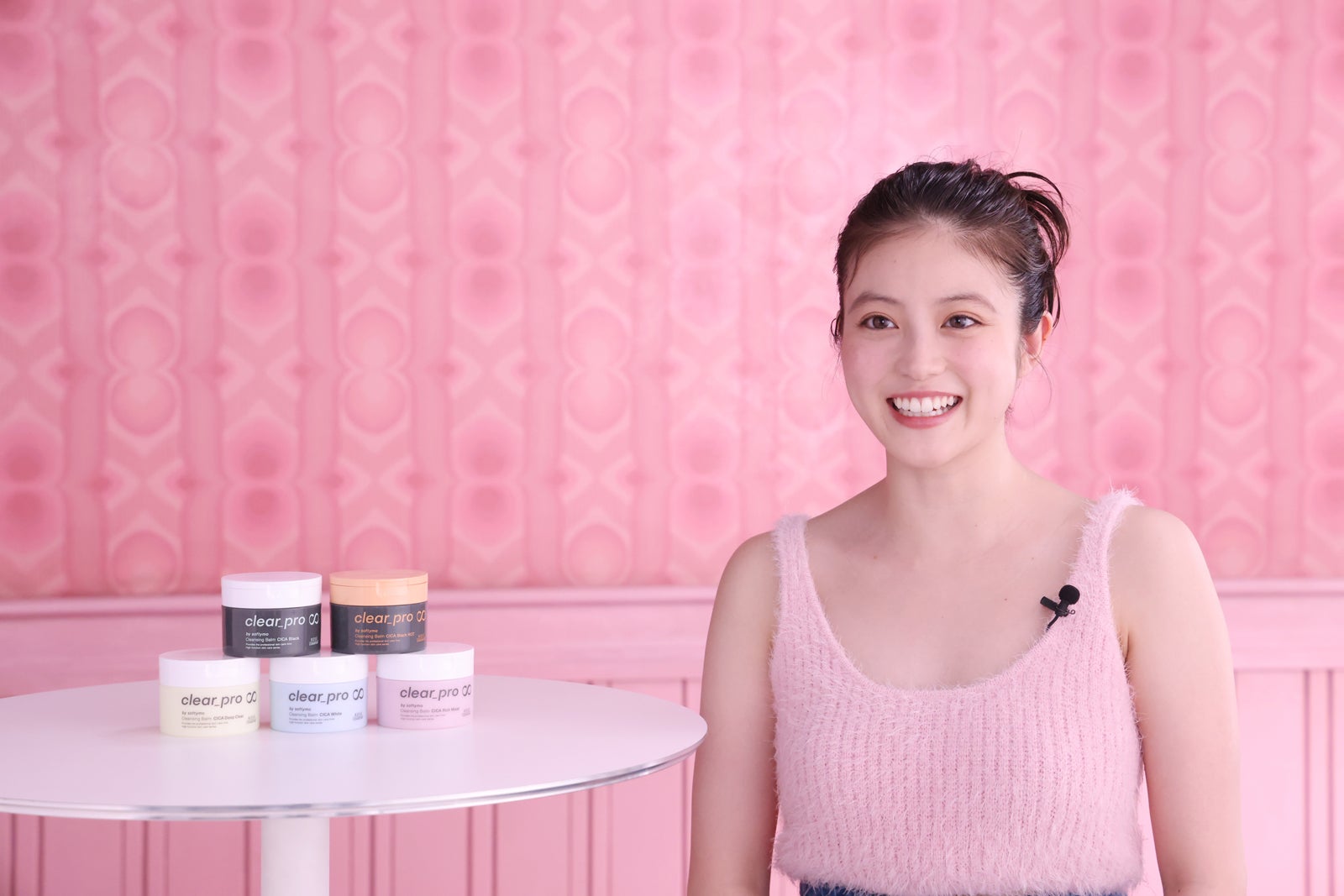 新CM「クリアプロだC」篇では、部屋着をイメージした可愛らしいピンクの衣装とお団子結びの今田が素肌に黒いバームをのせて登場。「毛穴気になるC」や「クリアプロだC」など、語尾に「C」をつけたセリフとともに、手で「C」をかたどった可愛いポーズを次々と繰り出す。撮影中は「C」ポーズを表現するため、監督と一緒になって手でかたどった「C」の細かな角度や表情を調整するなど、楽しみながら撮影に挑む姿が垣間見えた。このCMでしか見られない今田の可愛い「C」ポーズと、すっぴん姿できめ細やかな肌も披露する。