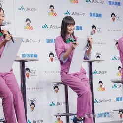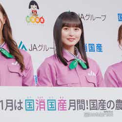 出演する新CM内で“果物推し”の梅澤、“お米推し”の遠藤、“お花推し”の田村は、オリジナルのつなぎを着て登場。梅澤は「私も普段、毎日フルーツを食べていて、家に何種類ものフルーツを置いてあるぐらいすごく好き」と明かし、「良い匂いに囲まれながら、素敵な環境で、撮影させていただいております」と撮影を振り返った。遠藤は「秋元真夏さんから“お米推し”を引き継がせていただきました」と報告し、「私の好きなみたらし団子やおせんべいなどもお米から作られていて、“お米推し”としてはとっても嬉しいです」とにっこり。田村も「齋藤飛鳥さんから“お花推し”を引き継がせていただきました」と伝え、「普段からお花をいただいたり、プレゼントすることも多いので、たくさんの方にお花の魅力をたくさん伝えていけたらいいなと思います」と挨拶した。