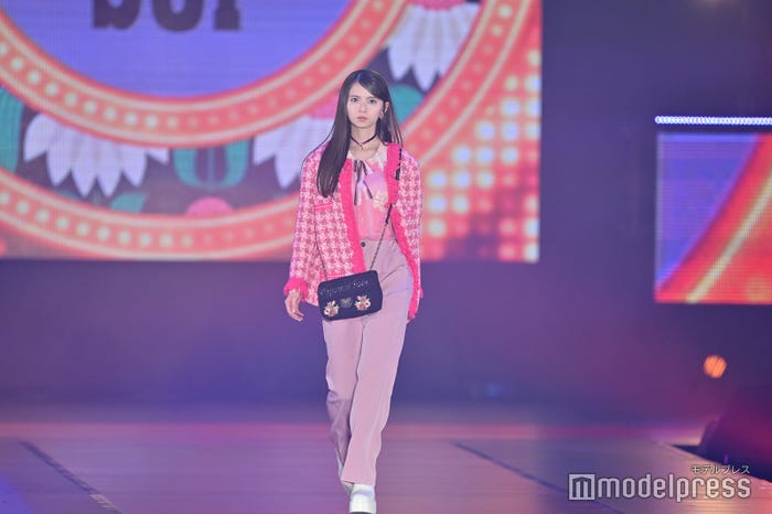齋藤は、ショッキングピンクの千鳥格子柄の羽織りに、トーンが違うピンクのシャツとパンツを合わせた全身ピンクのコーディネートを着こなし。ブルーとピンクのアイシャドウが印象的な個性派メイクで、イベントの開幕を華々しく彩った。2023年5月の卒業コンサートにて乃木坂46を卒業後、初の「GirlsAward」出演となった。