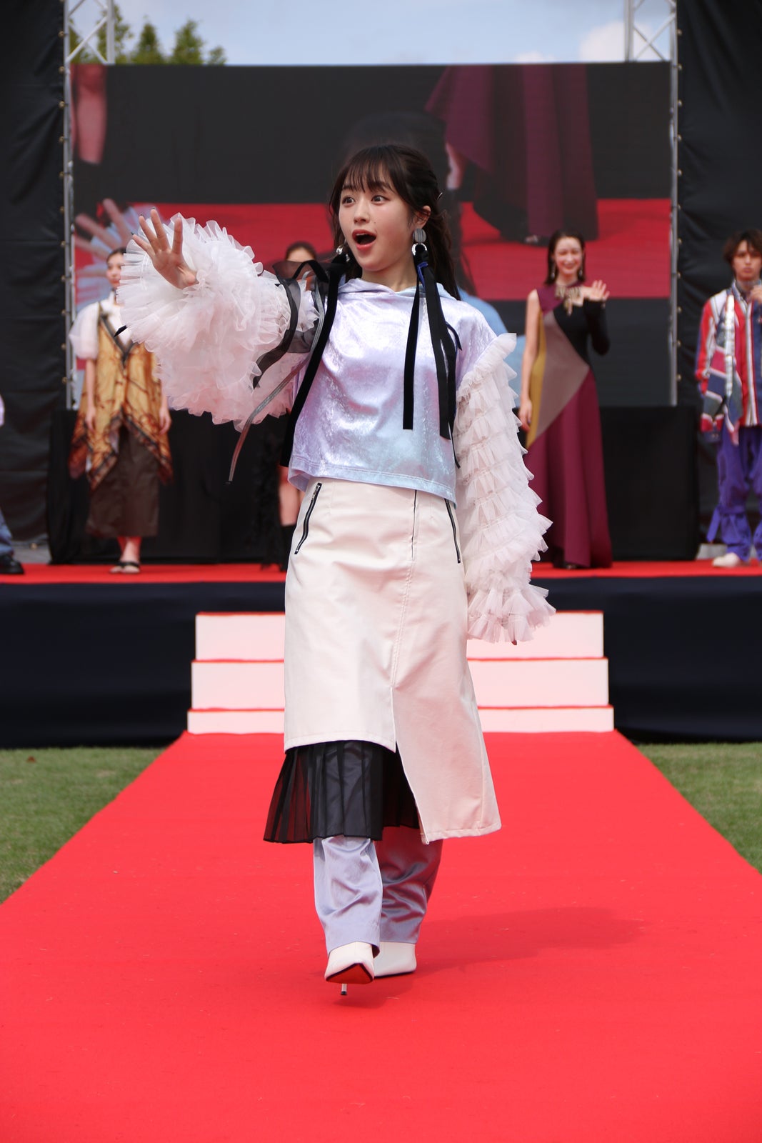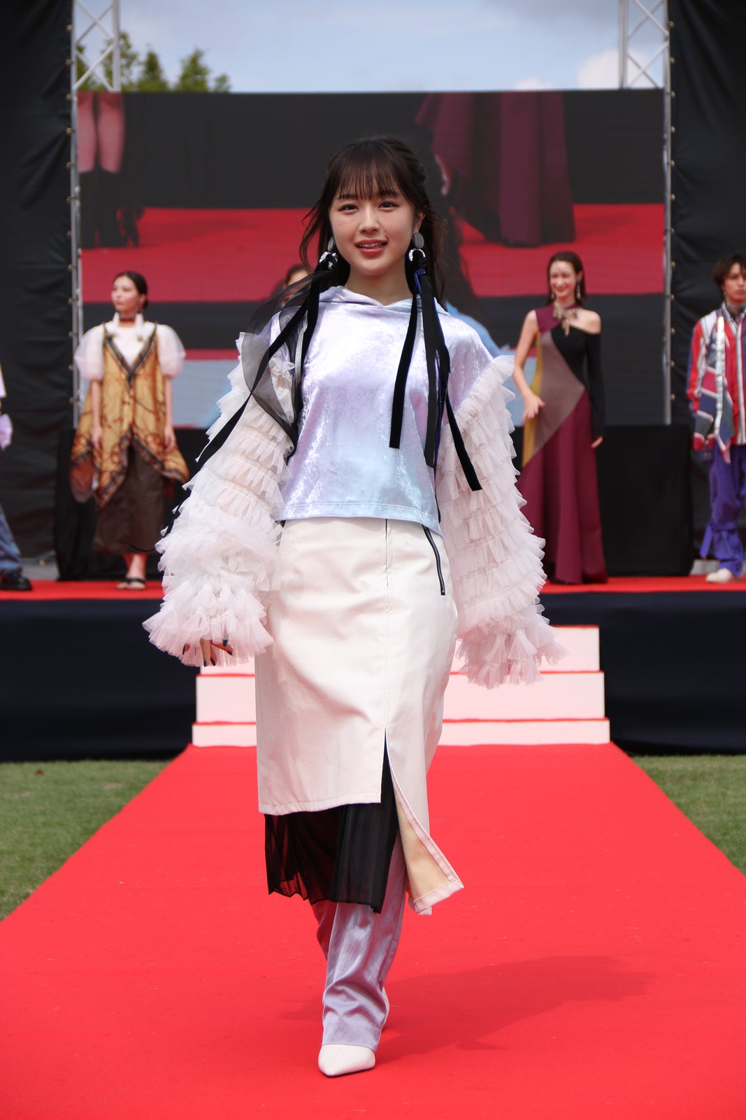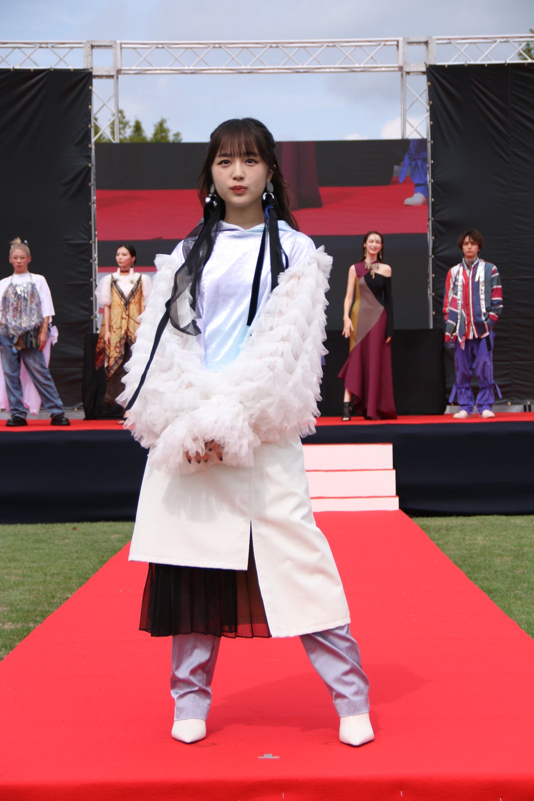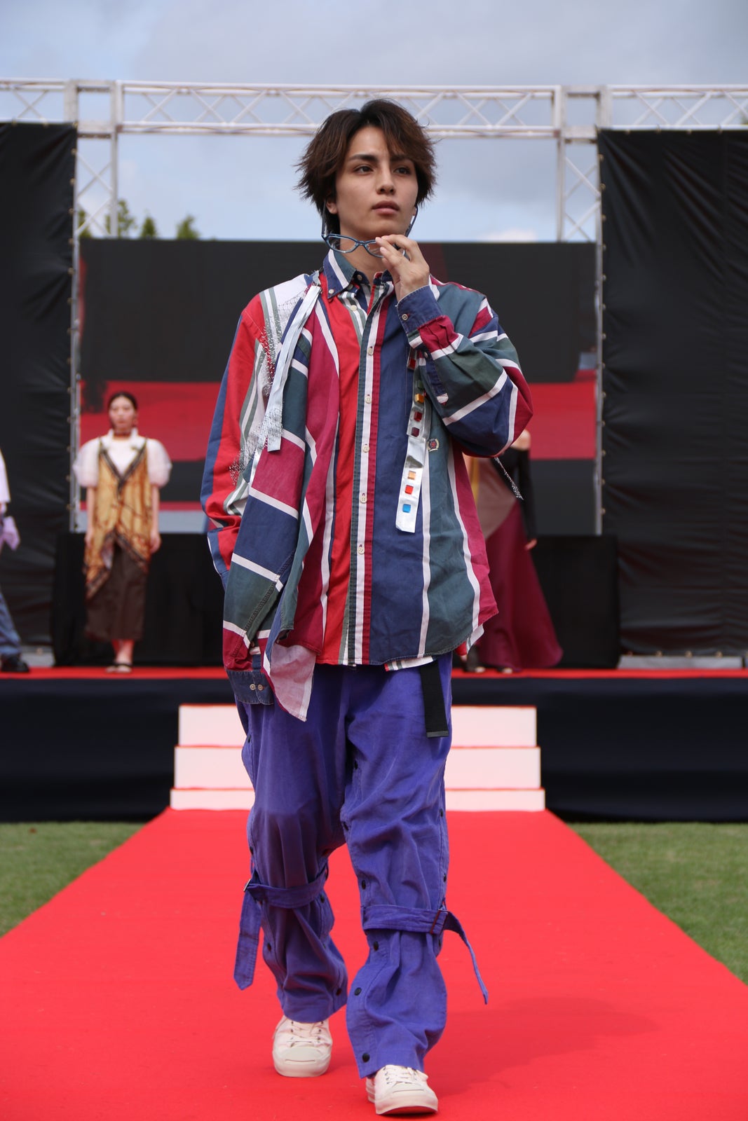 この日は「SDGs」「メガネ」をテーマにスタイリングされた、「鯖江」ならではのファッションショーを展開。鯖江の特産品であるメガネの端材や、国内生産率が95%で日本一を誇る福井県のリボンの端切れを活用し、SDGsに関心のある福井県在住の学生からなる鯖江 SDGs部が企画・デザインしたアイテムをコーディネートし、TGCでも人気のモデルがサステナブルなファッションに身を包みランウェイに登場した。EXILE TETSUYA&澤本夏輝、ワークショップで会場と一体に