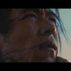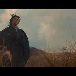 使い込まれた風合いの着物や荒々しい髪型など、これまで出演した本商品のCMシリーズ中、もっとも迫力を感じさせるメイクで富士の麓に広がる草原に登場した堺。“自分の信じる道を切り拓くサムライ”という役に入り込んでいるためか表情にも緊張感が漂っていたが、スタッフの中によく見知ったアクションコーディネーターの姿を見つけた瞬間、「おぉ~!」と明るい笑顔に。堺は「キミがいてくれると心強いよ!」と言葉を交わしながら腰に差す刀と脇差を受け取り、力強い足取りで撮影現場へ向かった。セリフの量こそ多くないものの、ひと言ひと言に重みのある役を演じるため、表情や声のトーンを確認するだけでなく、空き時間を見つけるたびに何度も発声練習を繰り返していた堺。中でも「だまっとけ!」と叫ぶシーンは特に力を入れていたようで、「顔はうつむきがいいかな。それとも真っすぐがいいかな…」など監督と入念な打ち合わせを行っていた。スタートの合図と同時に全身全霊を込めながらセリフを発すると、あまりの迫力に周囲から拍手が巻き起こり、監督も「ヤバい、カッコよすぎる!」と堺の演技を絶賛した。