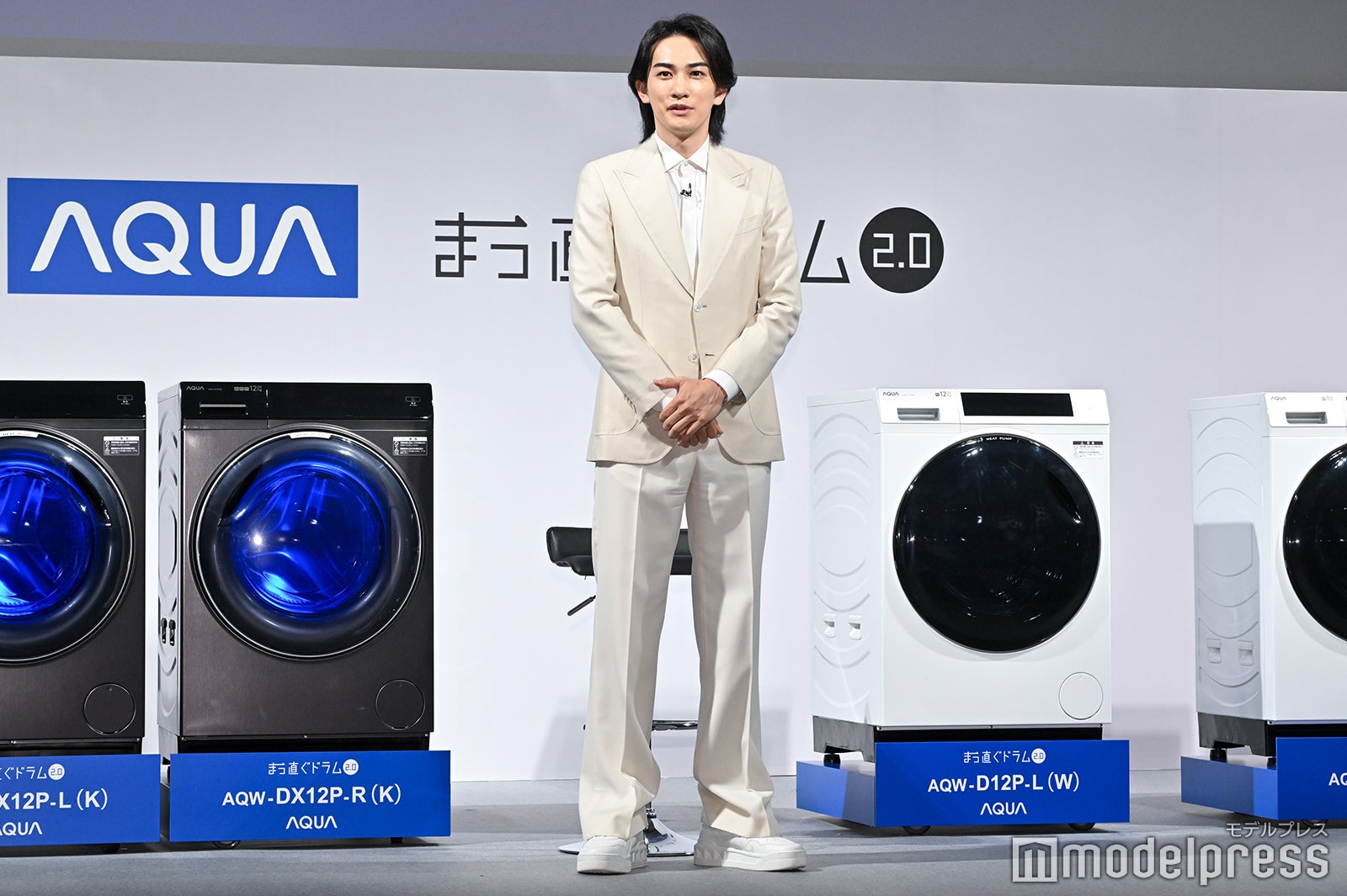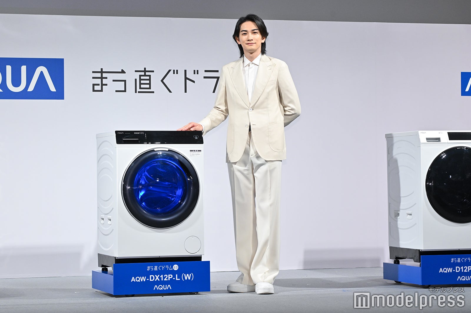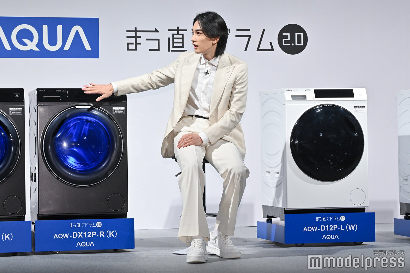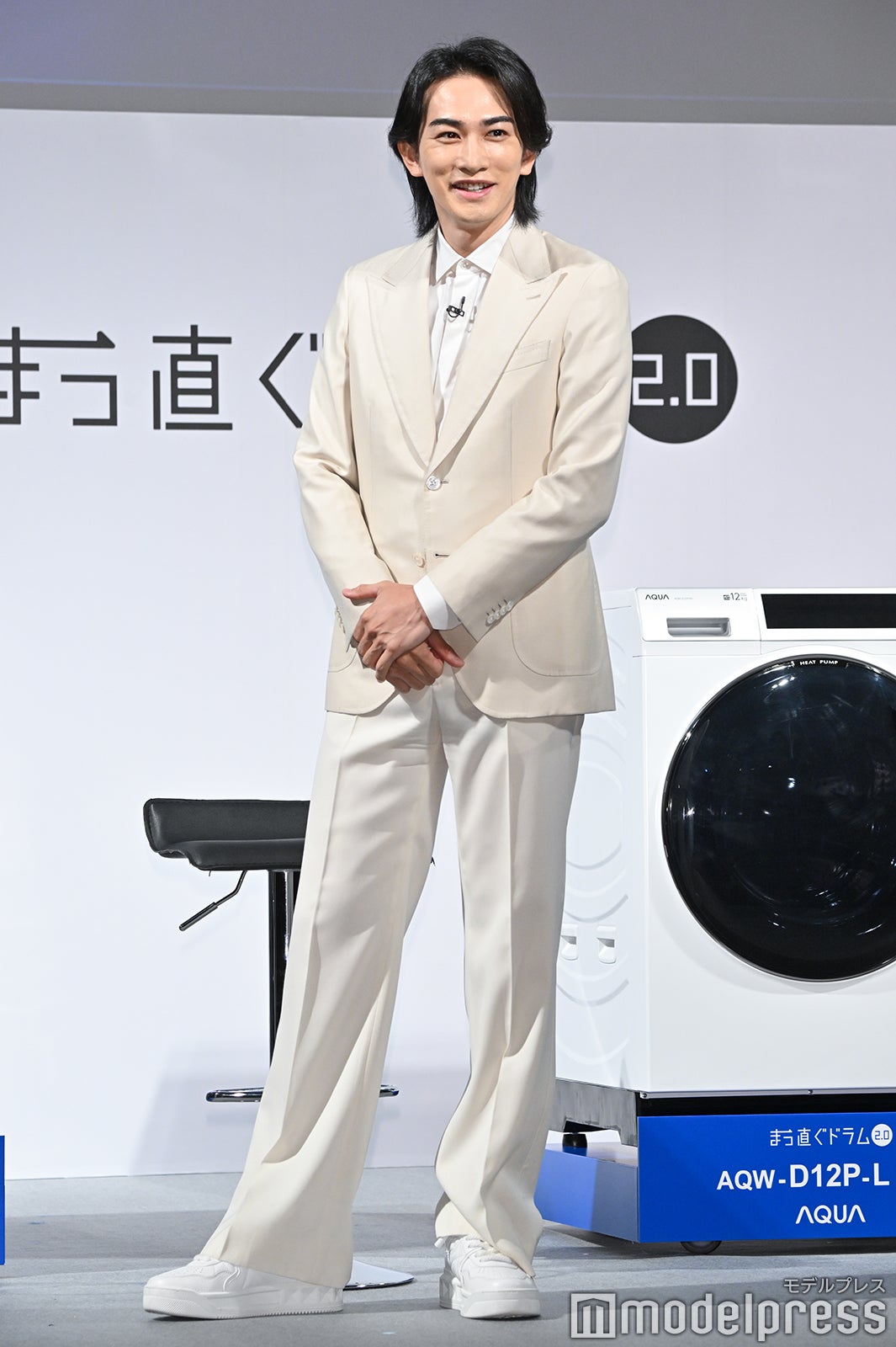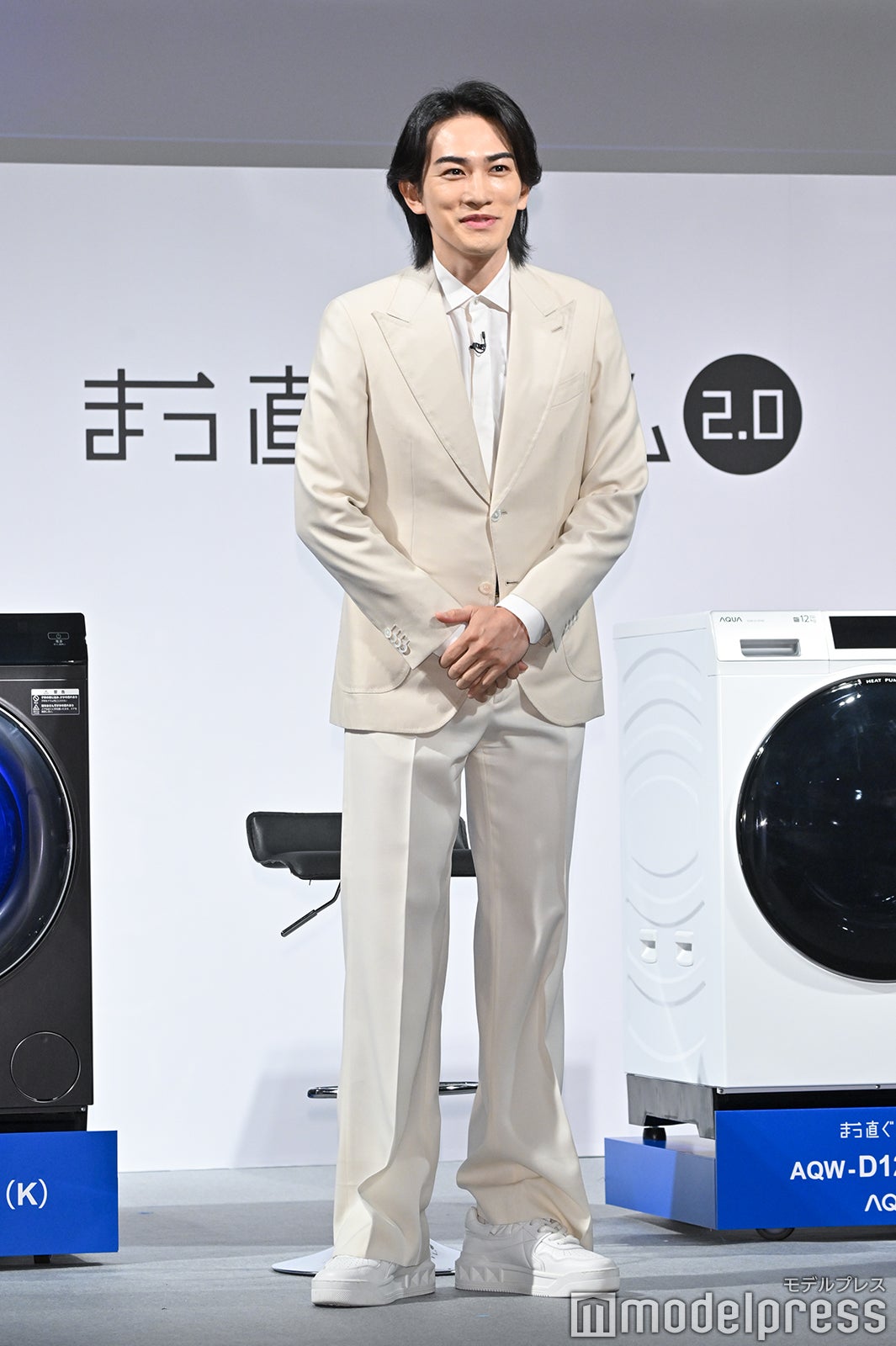 真っ白なスーツ姿で登場した町田は「オールホワイトで気持ちよくステージに立たせていただければなと思いましたし、白ってスタートとか、そういう意味も含まれているので、この新商品発表会にふさわしいんじゃないかなというコーディネートで来させていただきました」とにっこり。ドラム式洗濯乾燥機の新商品発表会に“洗濯好き代表”として出席した町田は「気持ちいいじゃないですか。休みの日とかは(洗濯機を)4〜5回くらい回すときもあります」と打ち明け、「ものによって洗い分けたりすることもあって、タオルでもキッチン周りだったり、バス周りのものでと分けたりもするので、気づいたら1日もう終わりだ。洗濯で始まり、洗濯で終わるみたいな日も結構ありますね。開けた瞬間のフワッとする感じも本当に好きなので…すみません」と興奮気味に語った。