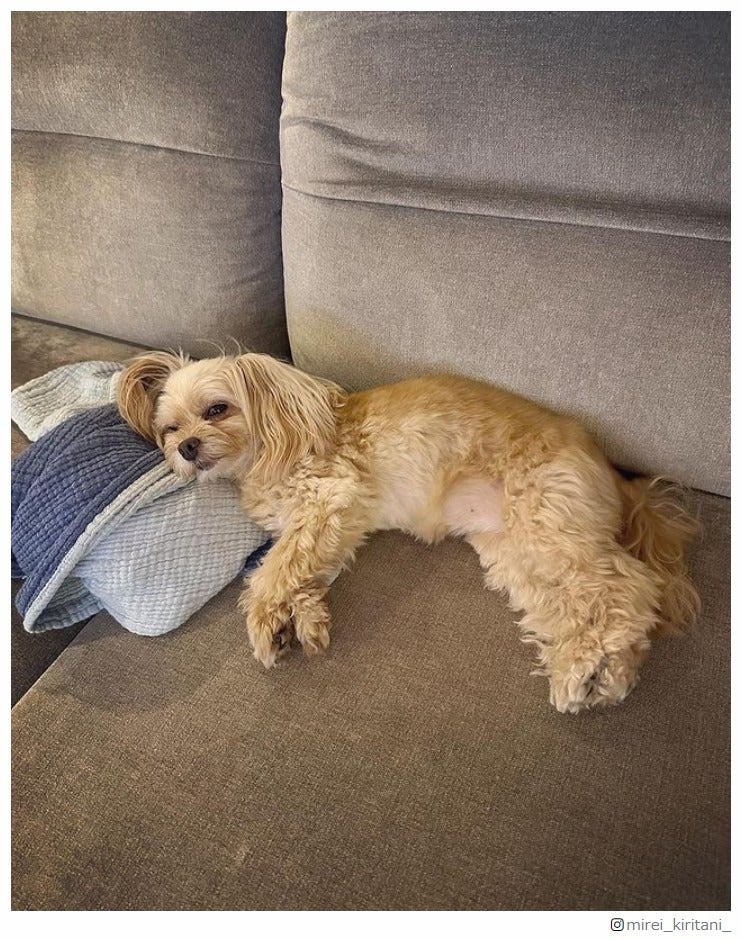 「元気が取り柄の私ですが、少し前までインフルにやられてました」とインフルエンザに感染していたことを報告した桐谷。「大人になってからかかったのは初めてで、想像していたよりもだいぶだいぶキツかった」と当時の苦しさを吐露した上で「とっても流行っているようなので、みなさん気をつけてください」とファンにも呼びかけていた。写真には「ぱとらは今日も人間のおばさんのように寝ています」と愛犬・ぱとらがソファで寝ている様子が収められている。(modelpress編集部)