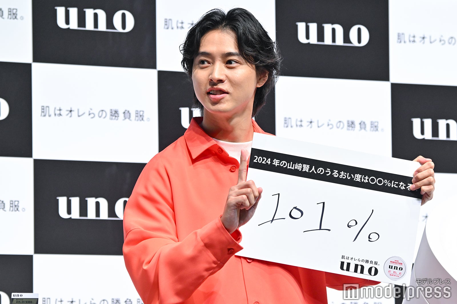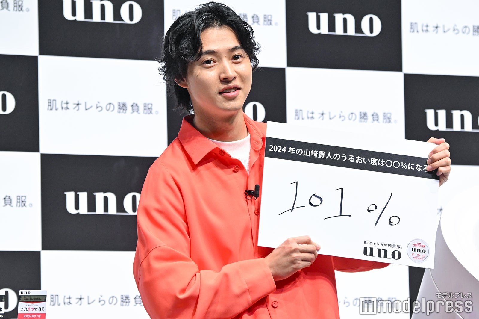 イベントでは、“2024年の山崎賢人のうるおい度は◯◯%”とのお題でフリップトークが行われ、101%と答えた山崎は「UNO(スペイン語で1)を足しました」とブランド名と絡め、「1%っていいなというか、1%ずつとか、1個1個やっていくぞという思いだったり、1%でも強く生きていこうよみたいな。1っていいよねって気持ちも込めて101%ですね」と込めた思いを明かした。そして、2024年に向けて考えていることはあるか尋ねられた山崎は「来年も去年とか今年にやらせていただいた作品が公開されたり、来年また新しくチャレンジさせてもらう作品もあったりして、勝負していこうかなというか、UNOさんをまとって、顔には勝負服を着ていこうかな…(笑)」と語った。(modelpress編集部)