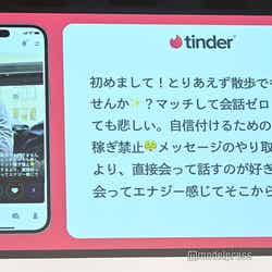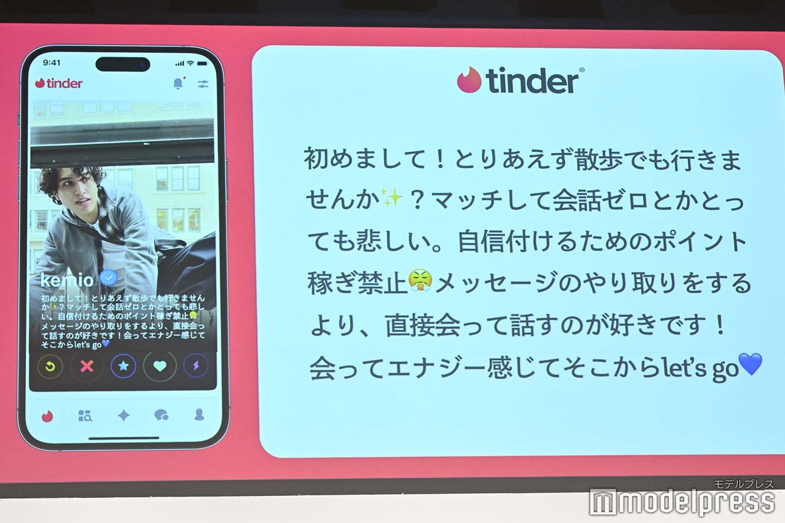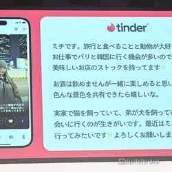 同キャンペーンのWEB CMや特別屋外広告に出演する4人。同アプリのプロフィールを作る企画でゆりやんは『アメリカズ・ゴット・タレント』に出演した際の角刈りに水着姿の写真を使用したプロフィールを披露した。これにROLANDは「写真好きだわ(笑)」と気に入り、ゆりやんは「自分でめっちゃかわいいと思う写真を載せて、(会った際に)“こんな感じ?”ってなったり、マッチしなかったときの自分を守るため(の写真)ということかもしれないんですけど、会ったときに“この写真よりいいじゃん”って思われたいのと、1番の正装を」と同写真を使用した理由を明かし、「1行目が大事って聞いたので、(『食事代は自分で払えます!』と)PRコメントを書きました」とコメント。これにkemioとミチは「勉強になりました」と声を揃えた。