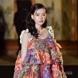 愛知県出身の野村はベージュにストライプの刺繍が施された秋らしい雰囲気の変形ロングジャケットを着こなし。パンツにショートブーツを合わせた大人な雰囲気のスタイリングを披露していた。TGC史上初“神社”にランウェイ「BISHU COLLECTION produced by TGC」初開催