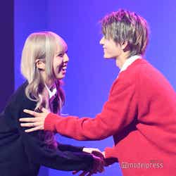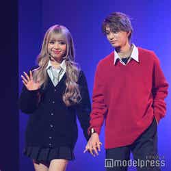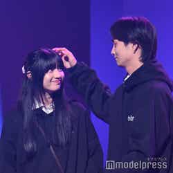 ABEMAの恋愛リアリティショー「今日、好きになりました。」シリーズは、「運命の恋を見つける、恋と青春の修学旅行」をテーマとして、2泊3日の中で巻き起こる、現役高校生たちのリアルで等身大な本気の恋と青春の模様を追いかけた、恋愛リアリティーショー。同ステージのトップバッターを務めたのは、「ハワイ編」での共演をきっかけに夫婦となった重川茉弥とまえだしゅん(前田俊)。重川がしゅんの腕を強く握り肩にあごを乗せるようにぎゅっと密着し、観客を悶絶させた。「夏休み編2023」で成立した向井怜衣&小幡海潤は、制服に黒色のパーカーを合わせて登場。ステージでは小幡が向井の頭をポンポンし、会場を甘酸っぱい雰囲気に。「フーコック島編」で成立したあいさ(細川愛沙)&須藤大和は恋人繋ぎのほか、須藤が細川を引き寄せてハグするなど大胆に密着。終始ラブラブな雰囲気でランウェイを闊歩した。