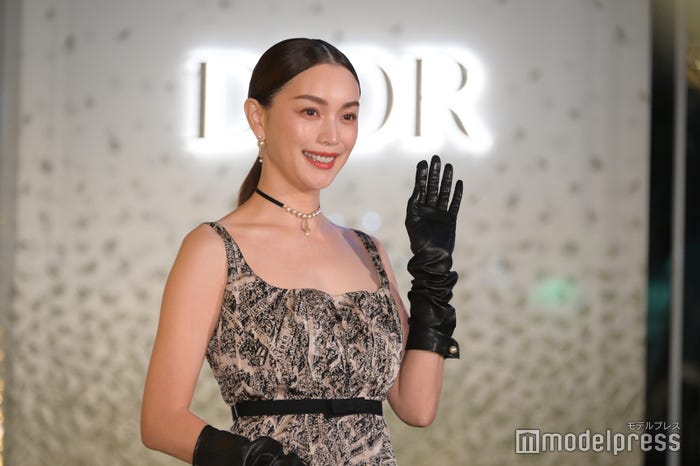 蛯原友里、美デコルテ輝くタイトドレスで登場<ディオールホリデーポップアップ>