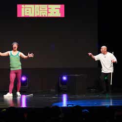 トップバッターは「TONIKAKU」こと、とにかく明るい安村。普段と違い、肌色の全身タイツ着用でのステージとなり、中国語での「大家请放心,我穿着衣服(安心してください、はいてますよ)」の発音にもやや苦戦している様子が見られたが、太極拳、卓球、酔拳、餃子づくりなど中国公演オリジナルの全裸ポーズに大きな拍手が起こっていた。男性ブランコと同様、2日連続で出演した5GAPは、コント「マッスルスティック」を披露。「アキレス腱を切る運動」「ばあちゃん専用ETC」などの意味不明な台詞が中国語字幕で映し出されると爆笑が起こった。男性ブランコは昨日に引き続き、コント「怪物のメランコリー」を披露。客席はその独特な世界観に引き込まれ、浦井演じる人間と平井演じる怪物「ゼゼ」が友情を確認するシーンでは、会場全体が笑いとあたたかい雰囲気に包まれた。