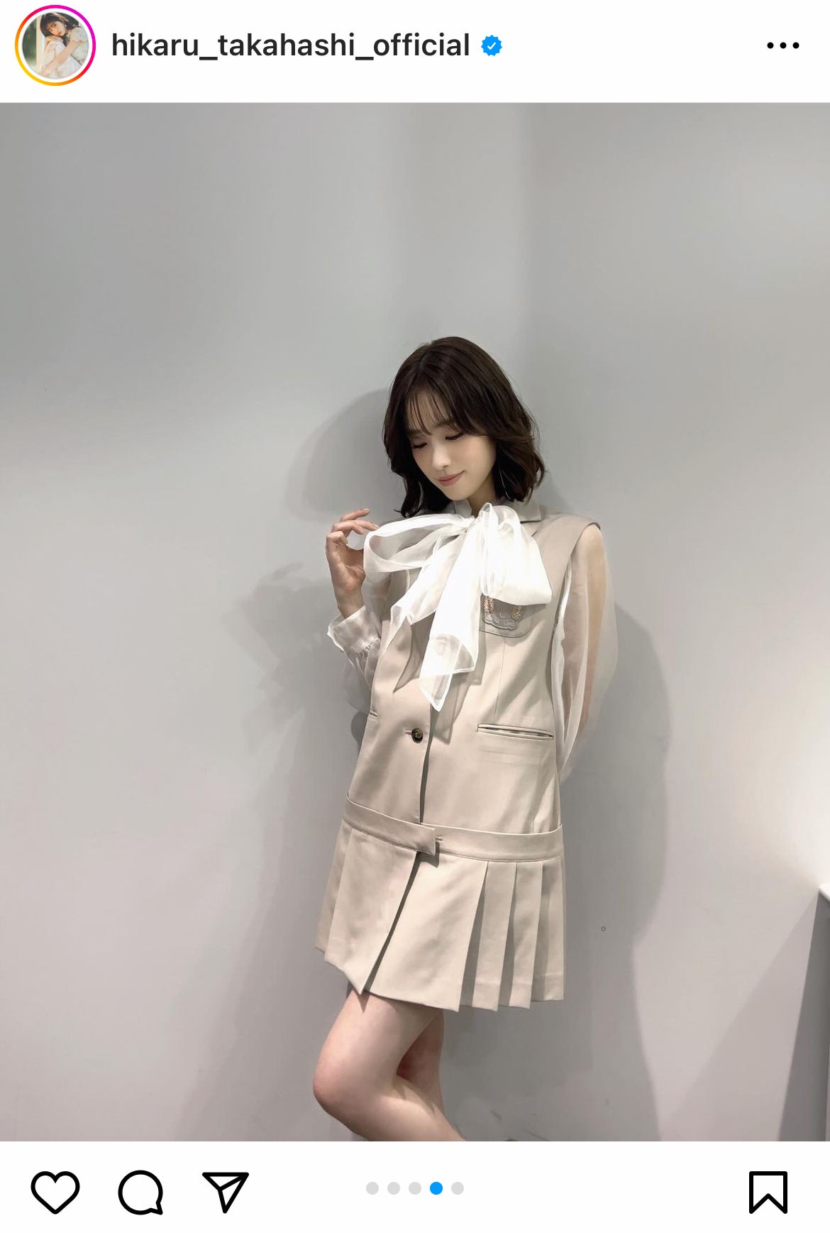 女優の高橋ひかる(※「高」は正式には「はしごだか」)が3日、自身のInstagramを更新。衣装を紹介し、反響が寄せられている。