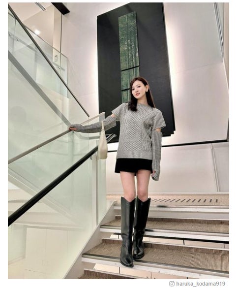 この日、兒玉は「ずっと着たかったニット」とつづり、私服姿の写真を投稿。二の腕部分に切り込みが入ったグレーのニットに、黒のショートパンツとロングブーツを合わせた“大人カジュアル”なコーディネートで「ミニ丈トレンドが去年からずっと来てるらしいので超ギリギリマイクロミニ丈です」と伝えた。兒玉遥の私服姿に反響