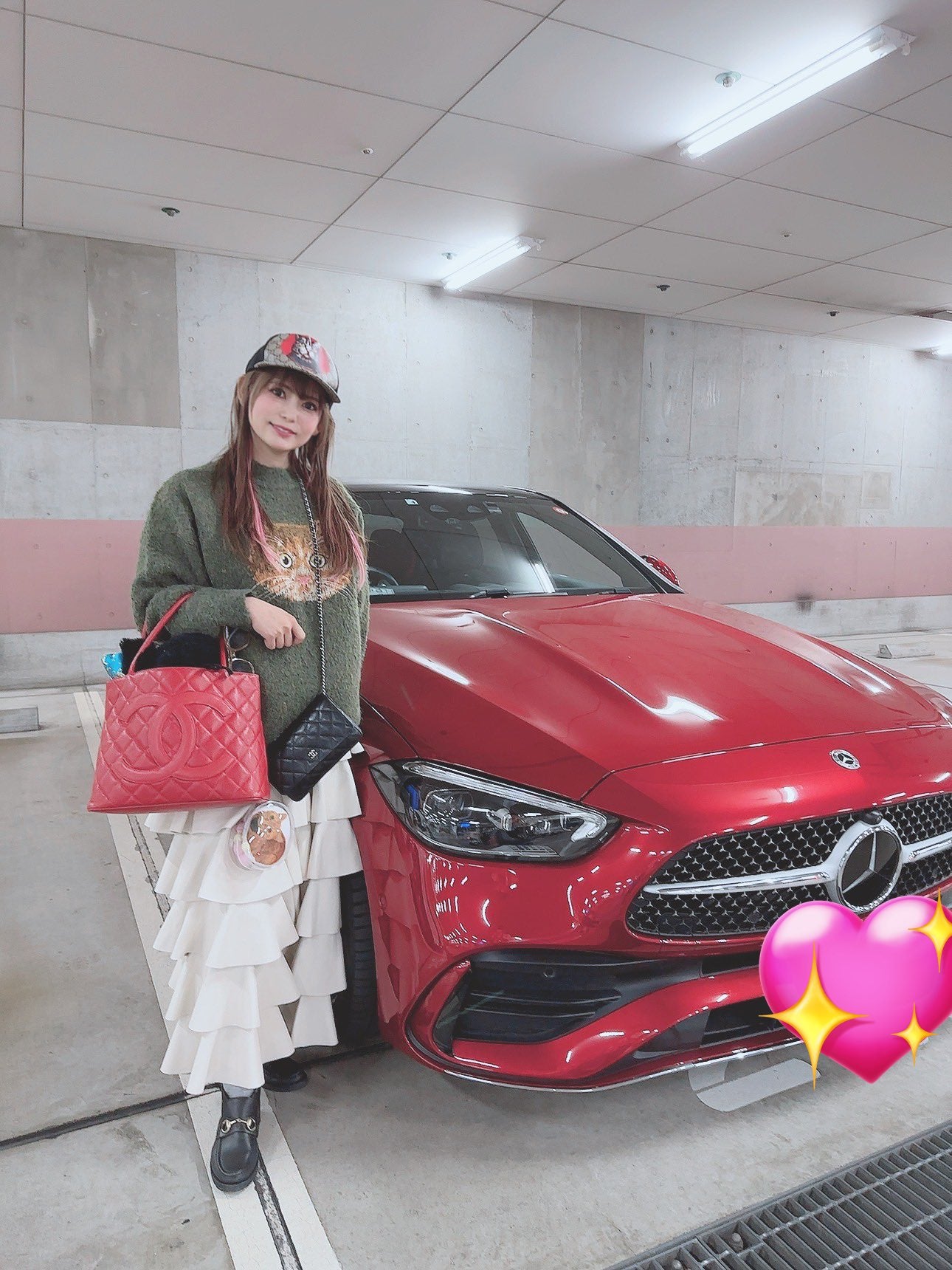 「真っ赤なめーちゃんと真っ赤なバッグで新年初仕事でした」と仕事始めを報告した中川。写真には、愛車である真っ赤なベンツの横に立つ姿が収められている。中川は、猫の顔がプリントされた緑色のニットにCHANEL(シャネル)の鮮やかな赤色のバッグを持っている。真っ赤なめーちゃんと真っ赤なバッグで新年初仕事でした! pic.twitter.com/H3d1tCBUxv