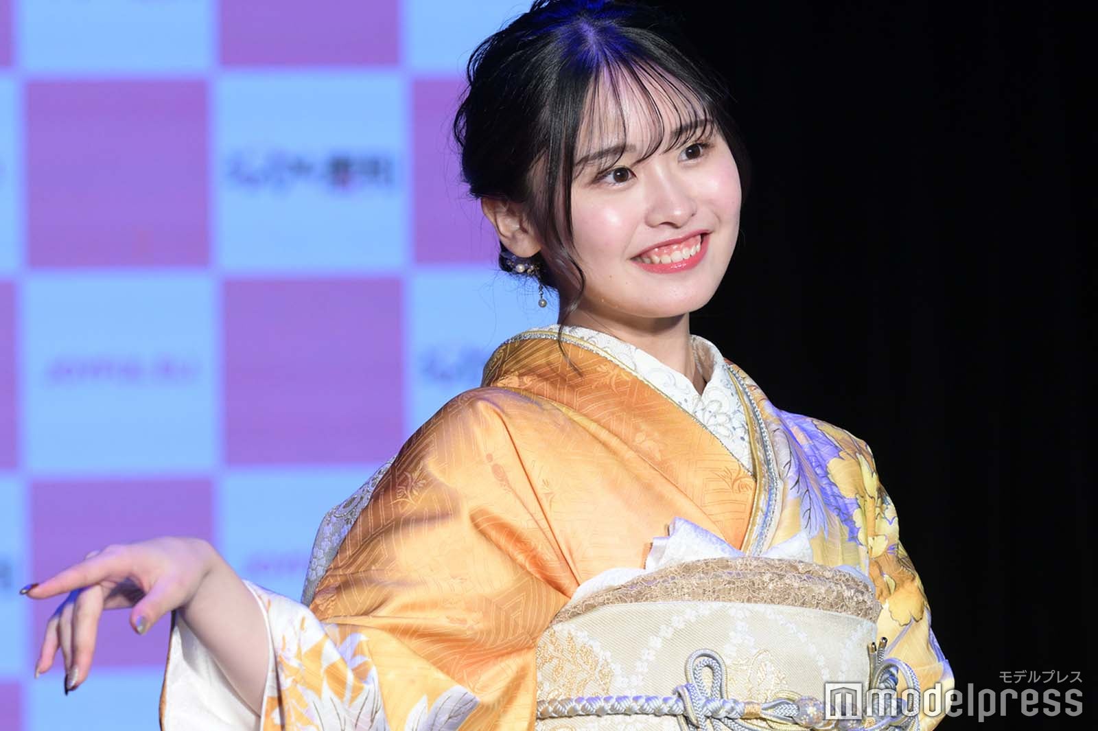 まいきちは「真っていう字にしました。これは一発で書いて、やり直しも何もせずにやったんですけど、理由は純真とも言うじゃないですか。真って。親にも嘘をつかずに、真っすぐ生きていけたらなという風に思いまして、真という字にしました」とコメント。去年は嘘をついたのかといじられると、喧嘩をしてしまうこともあったと明かしつつ「親にはもうちょっと感謝の気持ちを真っすぐ伝えていきたいなっていうのと、私の名前がまいきちって名前だと思うんですけど、本名が『まりか』で、まの字がこれなんですよ。それも含めてこれにしました」と笑顔で語った。「卵」と書いたもかは「3つの意味が込められていて。去年1年間たくさんお芝居をさせていただいて。女優の卵にね、なれたかな?ということで。今年はさらに飛躍できる年にしたいなという意味と、卵って殻が付いているじゃないですか。今年は殻を破っていきたいなと。ずっと『真面目ないい子ちゃん』っていう、わかんないですけど、イメージがあるかもしれないので。ちょっと破っていこうかなって」と笑顔。さらに「今年は大人にもなりますし、スキンケアをちょっと頑張りたいなっていう。卵肌になりたいの卵です!」とも続けた。卵だけに黄色の振袖を選んだのかと振られると「朝、家で考えてきて。振袖は今日何色を着るか知らなかったんですけど、着てみてびっくり!卵女もちょっと嫌ですけど(笑)、頑張りたいと思います!」と抱負を示した。
