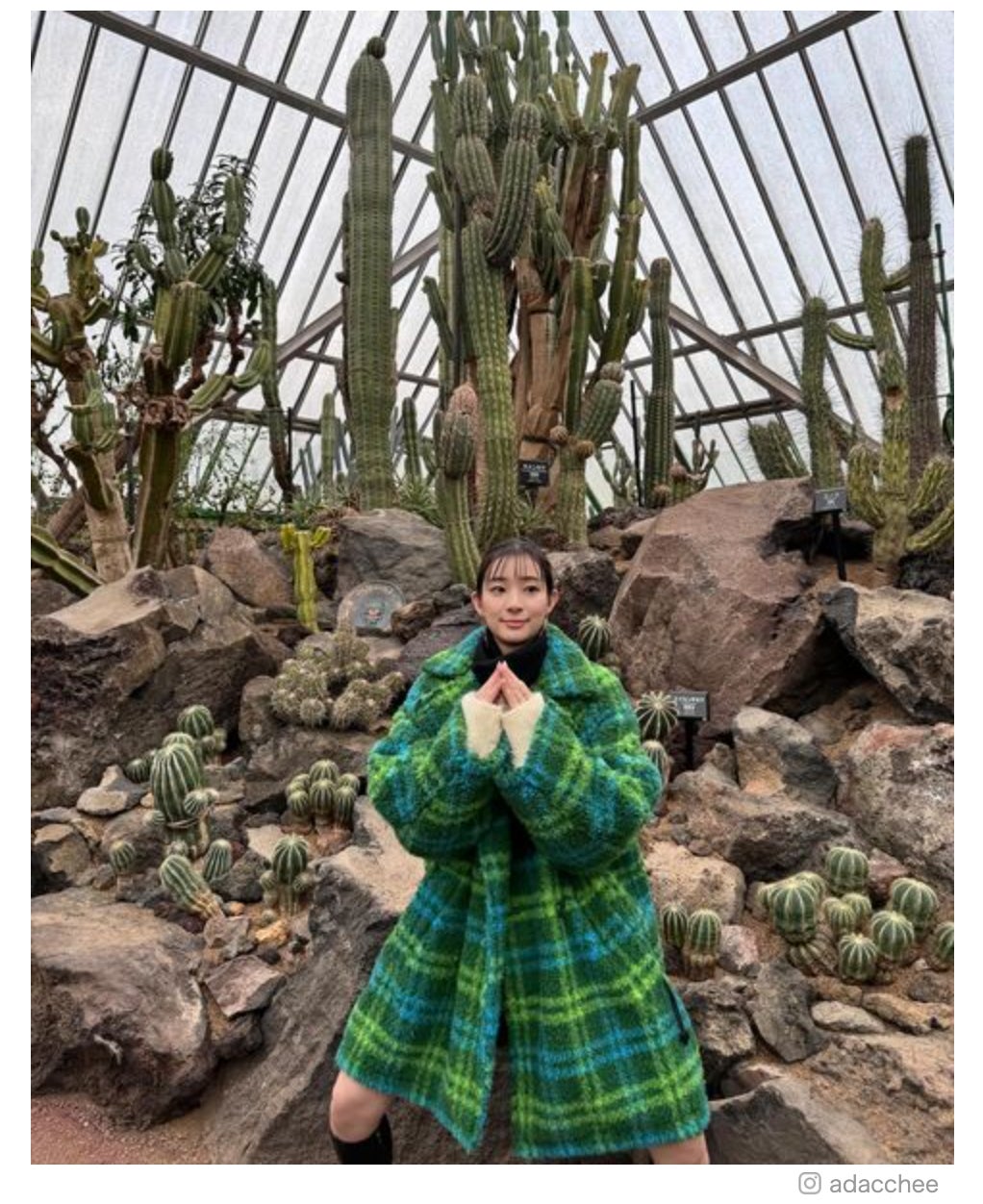 この日、足立は「みどり」とつづり、サボテンをバックに撮影した写真を複数枚投稿。美しい脚が覗くミニ丈のボトムスに、緑のコートを合わせたコーディネートを披露した。同投稿には「スタイル良い」「サボテンカラーのコートだね」「美脚」と反響が続々。また、ガニ股で両手を合わせているポーズにも注目が集まり「サボテンのマネかな?」「行動が可愛い」「何のポーズなんだろう?」といった声も寄せられている。(modelpress編集部)