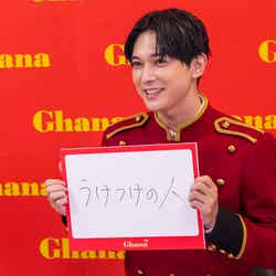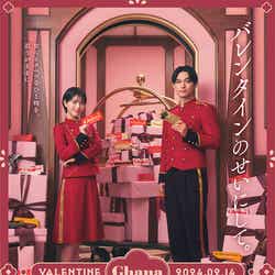 シリーズ3年目となる今年のテーマは「Ghana Valentine Hotel」。ガーナがバレンタインの時期だけにオープンする架空のホテルを舞台に、バレンタインのせいにして、色々な過ごし方をしたいお客様たちが訪れ、優秀なホテリエの浜辺と吉沢がガーナと一緒に望みを叶えていくというストーリー。さらに、今回は3分30秒ものスペシャルムービー「バレンタインの夜」篇を2月7日に公開し、各SNSでも配信を開始する。今回はホテルを舞台にした企画のため、ピンクと茶色基調のエレベーターと、暖色の照明で温かみのある部屋のセットが用意され、エレベーターのドアや部屋の机などの家具は焦茶色、手すりやワゴンは金色で高級感が漂う。「おはようございます!」と笑顔で登場したのは、赤地に金ボタンのついた制服、下は同じ赤地の膝丈スカートに黒のヒールの姿の浜辺。あご横あたりまでのスッキリとしたベリーショートヘアの髪型で、まさにホテリエといった清潔感のある装いだった。