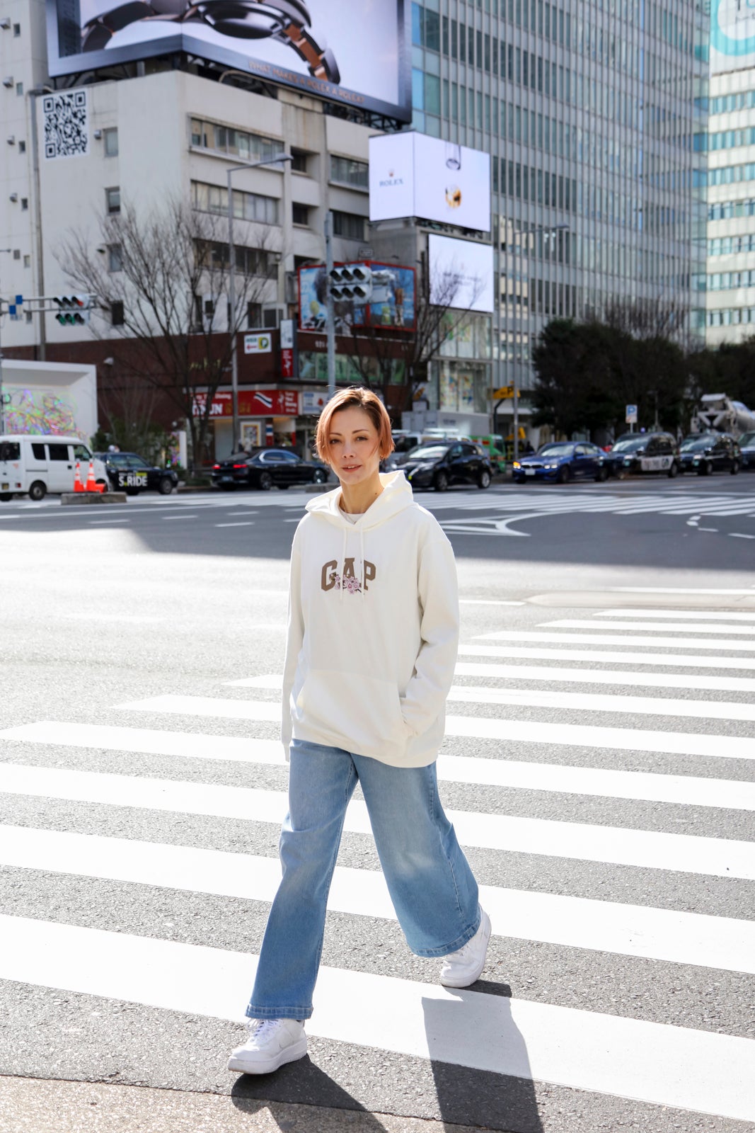 アンナと澄海が着用しているアイテムは、桜とロゴが融合した日本限定デザインのSAKURAコレクションのフーディーに、ルーズ感あるシルエットのデニムを合わせたリンクコーデ。ビジュアルではかっこよく着こなした2ショットを披露している。武部柚那、親子で登場