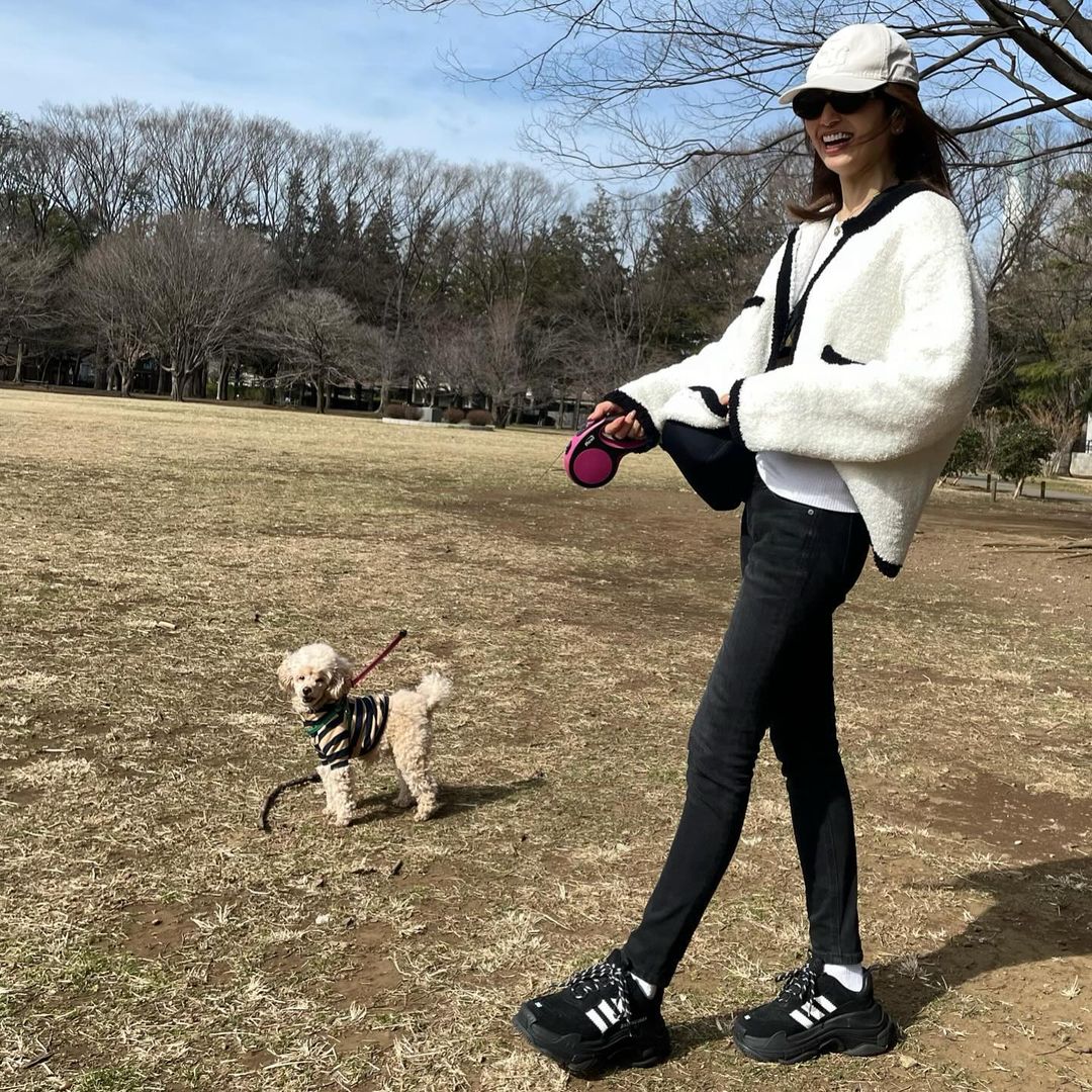 矢田は「春一番が吹いた昨日」と前日に愛犬2匹と散歩に出かけた時のプライベートショットや、犬と顔を寄せ合う動画などを公開した。白のトップスにボアジャケットを羽織り、黒のスキニーパンツを合わせたシンプルなコーディネートに身を包み、美しくスラリと伸びた脚を披露した。
