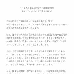 最後には「関係行政期間、専門家にも相談し、『特定遊興飲食店営業』の範囲での営業については行っても問題ないという回答を得ております」とし、「今後は、全社をあげて信頼回復に向けて全力で取り組んで参ります。引き続き、ご愛顧を賜りますようお願い申し上げます」と呼び掛けている。