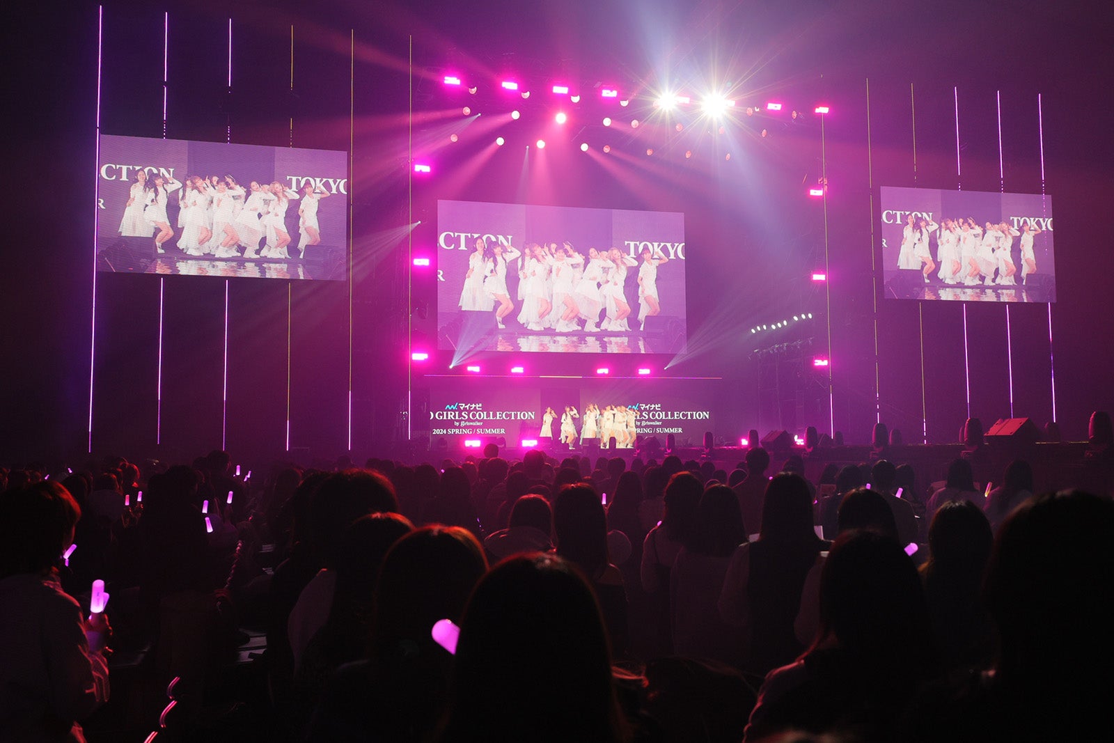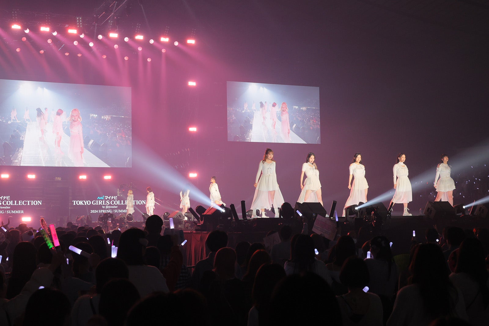 3月2日、東京・国立代々木競技場第一体育館にて開催されたファッションイベント「第38回 マイナビ 東京ガールズコレクション 2024 SPRING/SUMMER」(以下、マイナビ TGC 2024 S/S)に出演した2組。結成後初のステージとなったME:Iは、ホワイトを基調にシルバーのビジューがきらめく衣装で登場し、パワフルなパフォーマンスを披露した。そして鈴木は、ストライプのキャミチュニックにラフなパンツを合わせたコーディネートでランウェイを闊歩。ボリューム感のあるファーハットを被り、ランウェイトップでは目を瞑り可愛さたっぷりのポーズで観客を虜にしていた。