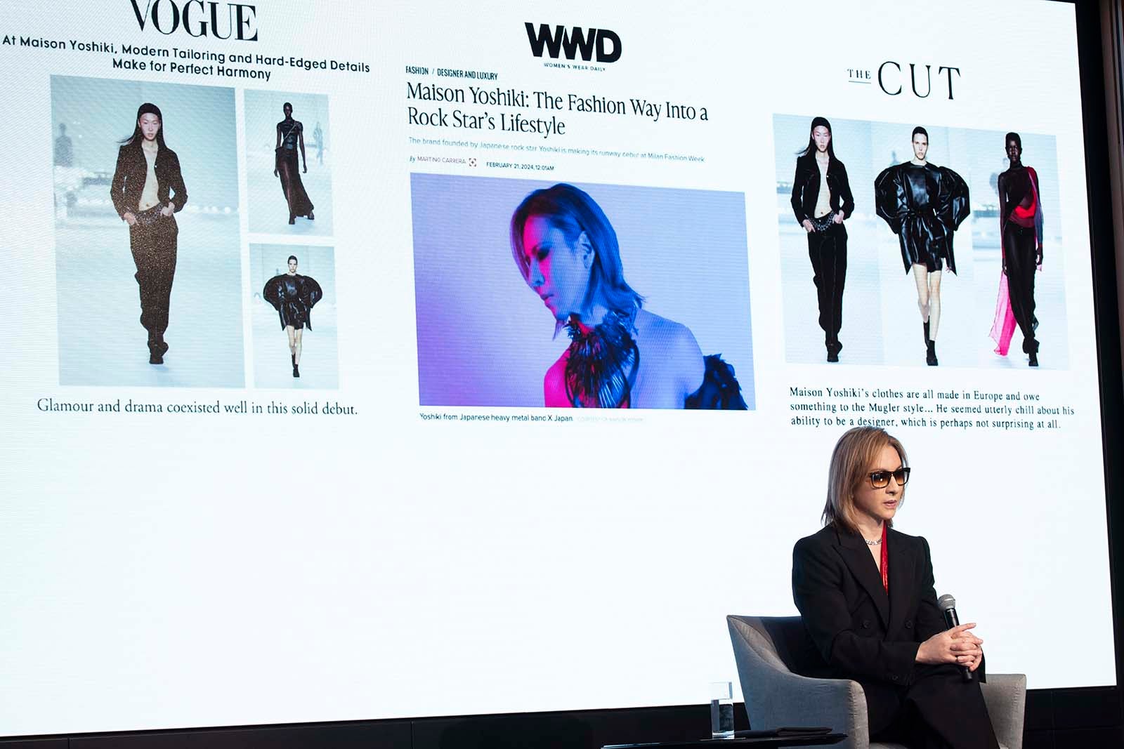 今回のデビューコレクションを、米「VOGUE」は、「グラマラスさとドラマティックが共存する圧巻のデビューとなった」と絶賛したほか、米「WWD」は、「YOSHIKIのクリエイティビティの核心とも言える煌びやかな美学とシンクロしている」と賞賛。また、米「New York Magazine/The Cut」は、「YOSHIKIからはデザイナーとしての堂々たる自信が感じられた。彼の多才ぶりを思えば驚くことではない」と高く評価しており、さらに、英「FAB UK」、英「Reuters」、「Reuters Asia」、仏「Madame Figaro」、仏「Fashion Network」、また日本でも「VOGUE JAPAN」「Numero TOKYO」「ELLE JAPON」「WWD JAPAN」「FASHIONSNAP」など、多くのメディアがニュースとして取り上げている。