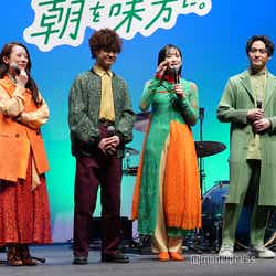 4人組バンド・緑黄色社会(長屋晴子、小林壱誓、peppe、穴見真吾)が14日、都内にて開催された野菜果実ミックスジュースのアンバサダー就任発表会に出席。新曲を初披露した。