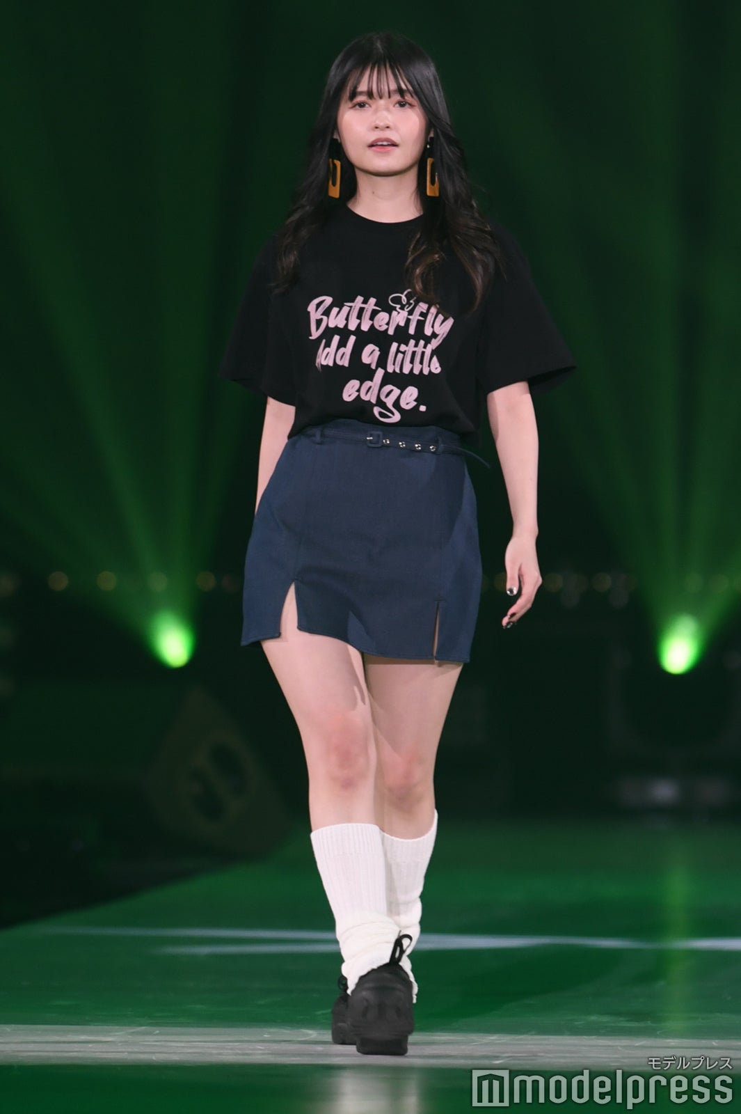 ファッションステージのトップバッターを務めたのは安斉星来。甘めな雰囲気のワンピースにダウンベストを合わせて程よくカジュアルダウンしたコーディネートで登場すると、クールな視線でランウェイを歩き、その後も王林や貴島明日香、なこなこカップルのなごみと人気モデルが続々とウォーキングした。ばんばんざい・ぎし&みゆら北海道出身者がランウェイ