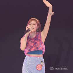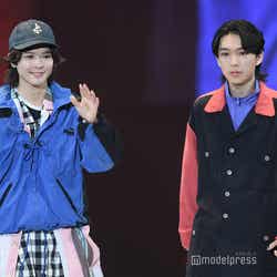 なごみは、ブルーのチュールをあしらった存在感あるワンピースにスポーティなトラックジャケットをオン。こーくんは、カラフルな柄シャツに鮮やかなブルーグリーンのパンツをはき、デニムアウターを合わせたスタイルでランウェイを歩き、ランウェイトップでは見つめ合う様子を見せ歓声が飛んでいた。MCで結婚を祝福されるとなごみは、「普段外歩いてると『応援してます』って言っていただく事が多いんですけど今は『おめでとう』と言っていただくことが多いです」とにっこり。また、こーくんは仕事の際にお花を貰うことが増えたといい「家が花屋みたいになっています」と明かしていた。