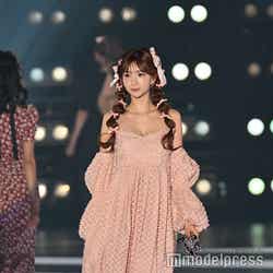ひめかは大胆に胸元をのぞかせたピンクのキャミソールワンピースで登場。ヒールや低めのツインテールに飾られたリボンなど、小物も全てピンクで揃えられたオールピンクコーディネートを披露した。「関コレ」テーマは「I LOVE ENTERTAINMENT」