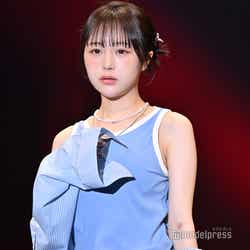 なえなのは、淡いブルーのノースリーブにシャツを羽織り、オーバーサイズのパンツを合わせたカジュアルなコーディネートで登場。ランウェイではシャツをおろして肩をチラリと出し、透明感のある美しい素肌を披露した。また、ファンを見つけて指を差したり、ハートをしたりとファンサービスも多数披露。客席からは歓声が上がっていた。