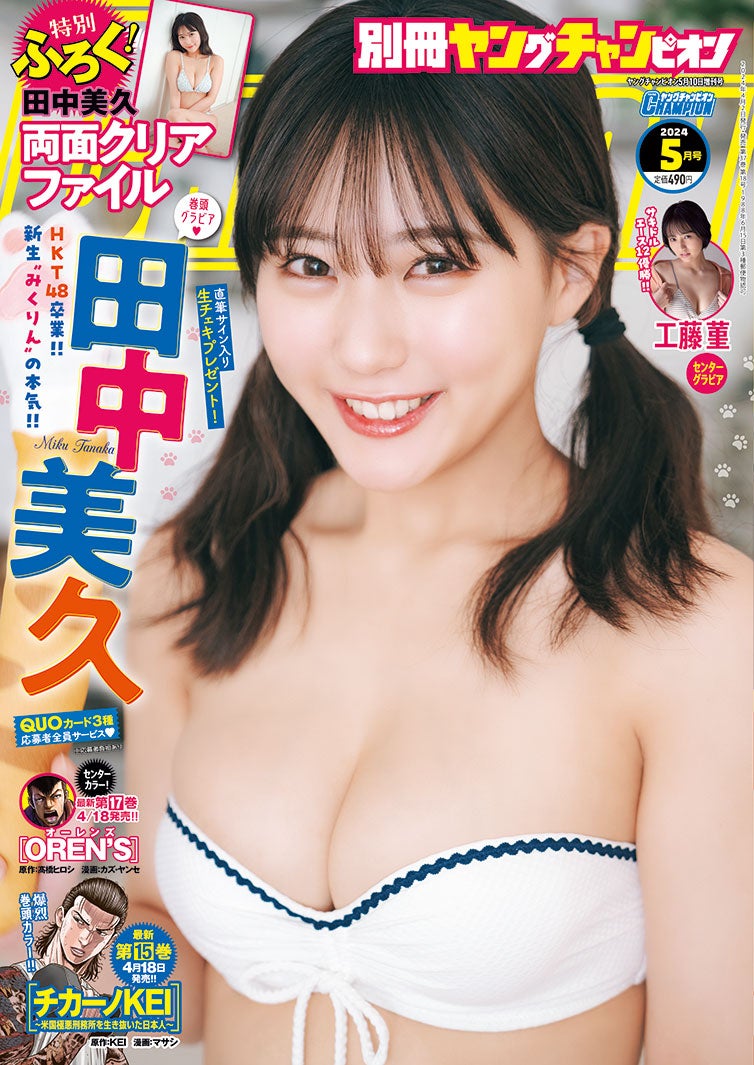 元HKT48の田中美久が、2日発売の雑誌「別冊ヤングチャンピオン」5月号の表紙・巻頭グラビアに登場。豊満なバストを披露した。