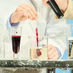 実演にあたり白衣姿に着替えた村重は「テッテレー!村重博士です」と得意げに決めポーズで登場。堀江氏の指導のもと、ビーカーの中でシャンプーのベースと染料液を混ぜていく。「わ~!!すごい!楽しい!」とワクワクした様子の村重。みるみるうちにピンクになったシャンプーベースにブリーチしたサンプルの髪をつけて染め、ドライヤーで乾かす。ドライ後、しっかりピンクに染まった髪をみて「え~~!!時代ですね…」とカラーシャンプーの底力に圧倒される村重。「こんなにきれいに色が入るんですね!これはぜひ色んな人に知ってほしいです」と実験を楽しんでいた。