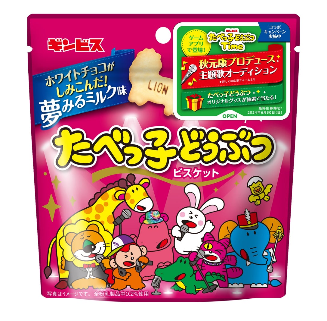 1978年の発売以来、どうぶつの形に英単語がプリントされた薄焼きビスケットが幅広い世代から⽀持されている同商品。この度、新たな取り組みとして⼦どもから⼤⼈まで世代を超えて楽しめるオリジナルソングを制作し、公式パズルゲームアプリの主題歌とすることが決定。その総合プロデュースに、これまで数多くの国⺠的ヒット曲を⽣み出し、エンターテインメント業界の第⼀線で活躍し続ける秋元⽒を迎えることとなった。秋元⽒の総合プロデュースによるキッズ⾳楽ユニットは、2024年秋にビクターエンタテインメントよりメジャーデビュー予定。メンバーは⼩学1年⽣から中学1年⽣を対象にしたオーディションによって今後決まる。オーディションの応募は、4⽉15⽇に全国のコンビニエンスストア(⼀部を除く)および、同社の公式ECサイトで発売する「たべっ⼦どうぶつ 夢みるミルク味」のパッケージに貼られたキャンペーンシールより受け付けとなる。