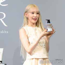 同ブランドは、ヘアスタイリストとしてキャリアをスタートし、長年、美容業界の第一線で活躍している河北がプロデュースするヘアケアライン。今回の発表会には、新CMに出演する宮脇が、純白のミニ丈ワンピースを着こなし登場した。新CMでブルーのヘアスタイルを披露していた宮脇だが、この日はホワイトのヘアカラーにガラリとチェンジ。様々なヘアカラーに挑戦している宮脇について、河北は「いいですよね、挑戦していくこと。もちろん音楽もやられてるから、色々あるかもしれないんだけど、表現をしていて、またそれを楽しむ。カラーをどんどん変えるっていうのはすごくいいなと」とコメント。河北の言葉を受け、宮脇は「季節が変わるごとに髪を変えています!(ヘアカラーを変えると)気分が変わるし、新しい自分を見つけられるので。私はヘアに対してはすごく挑戦的な気持ちを常に持っています」と様々なカラーに挑戦する楽しさを語った。