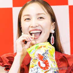今回、かっぱえびせん号特別車掌に任命された百田は、えびを思わせる赤のドレスで登場し、ほっそりとした二の腕を披露。赤は自身のイメージカラーでもあり、百田といえばパフォーマンス中のエビ反りジャンプがおなじみでもあることから、百田は「お話をいただいた時に、イメージカラーが赤で、エビ反りジャンプをしていて良かったなと心の底から思いました」と喜びを見せた。また「こうしてかっぱえびせんのお仕事をできるとは思っていなかったので、エビ反りジャンプをし始めた頃の私に『跳び続けていたらかっぱえびせんのお仕事できるよ!』って教えてあげたいなって思います」と笑った。その後、フレンチサラダ味の試食をした場面では、1口食べて「好きです!」とコメント。「こういう、ちょっと酸味のあるものが個人的に好みというのがありますし、ちょっと細いので、今はお行儀よく1本ずつ食べているんですけど、普段だったら3本くらい一気に食べちゃってます(笑)」と楽しそうだった。