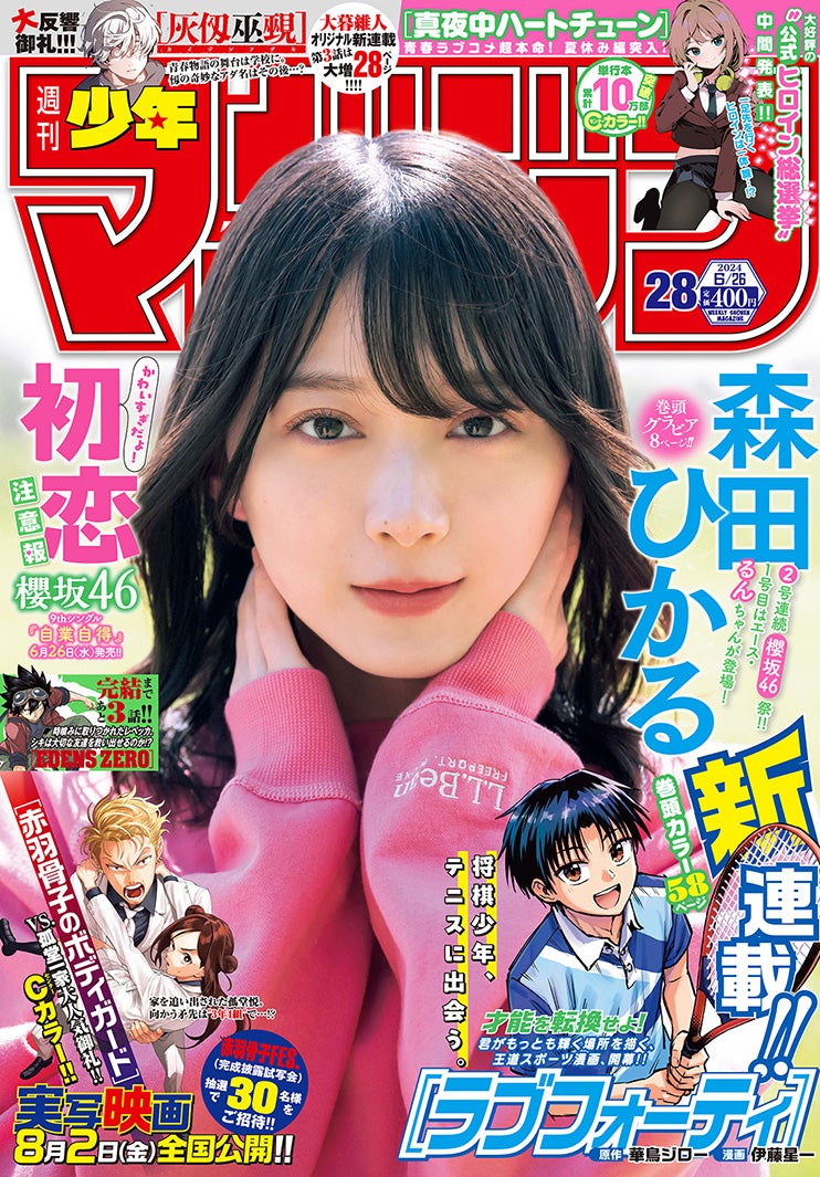 櫻坂46の森田ひかるが、12日発売の「週刊少年マガジン」28号(講談社)の表紙に登場。自然の中でリラックスした表情を見せた。