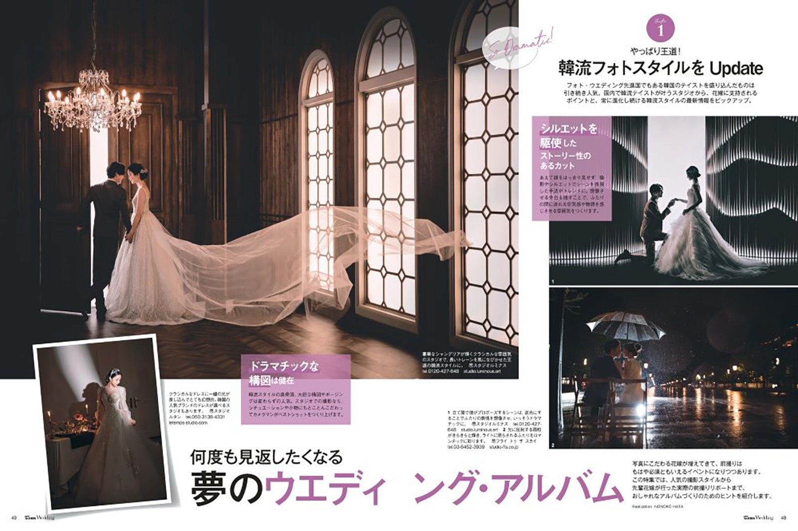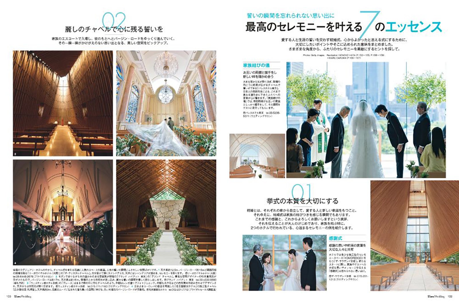 自然体な魅力と透明感溢れる美貌で、世代を問わず憧れを集める齋藤。最旬のインポートドレスとトップメゾンのジュエリーをまとい、気品に満ちたピュアな花嫁姿を披露した。インタビューでは、「今考える理想の結婚式とは?」との質問に、「普段の旅行先でも太陽や海、緑など自然を感じる場所が大好き。いつかそういう場所に親しい友人たちを招いて、アットホームなパーティが開けたら素敵ですね。(後略)」と答えている。