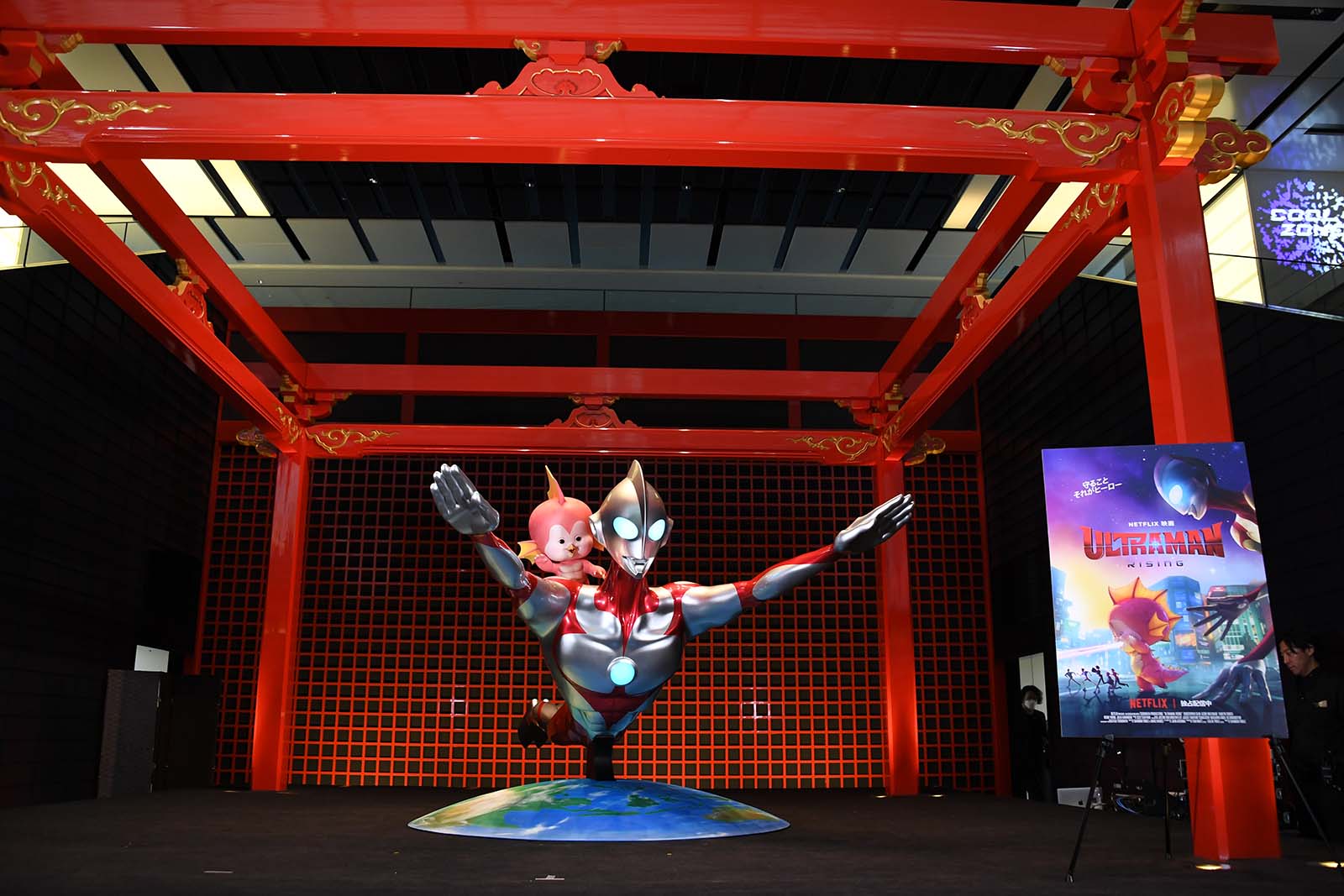 往来の多い空港で行われるイベントということで、近くを通りがかった一般の方々へも「ウルトラマンのイベントをやっています!山田裕貴と申します!」と自己紹介をしてアピールした山田。会場となった「江戸小路」エリアは、多くの訪日外国人を迎える羽田空港第3ターミナル内でも特に人気のあるスポットで「江戸」と「和」をテーマにしたエリア。赤い柱が印象的なの「江戸舞台ステージ」に登壇し笑顔を見せた。