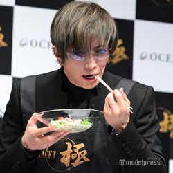 同イベントで発表された『GACKT極シリーズ』は、GACKTとオーシャンの「まだ知られていない美味しいものをみんなに食べてもらいたい」という想いが合致して生まれたブランド。厳選された産地、こだわり抜いた加工技術、そして、GACKTの審査に合格した逸品だけで構成されている。アンバサダーを務めるGACKTは黒のエプロン姿も披露。7月4日の誕生日を樽酒で祝福される一幕もあり「これ、僕のお祝いですか?本当に?」「完全にヒット祈願の方だと思うんですけど。(誕生日を)乗っけただけですね」とぼやいて、会場を沸かせていた。(modelpress編集部)