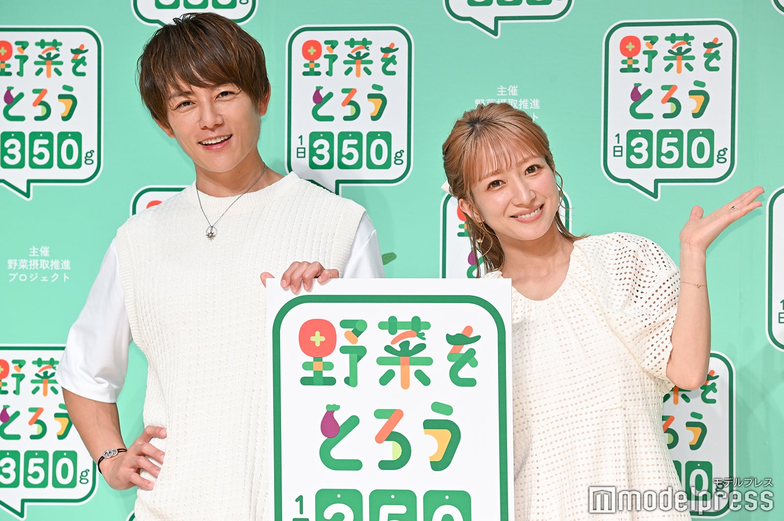 俳優の杉浦太陽とタレントの辻希美夫妻が15日、都内で行われた野菜摂取推進プロジェクト「野菜をとろうフォーラム」に、女子栄養大学の武見ゆかり教授とともに出席。夫婦での「野菜デート」事情を明かした。