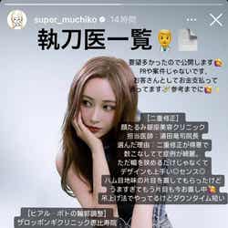 「好みあるので症例見るのとカウセ巡りは絶対!1つのクリニックで全部直すのではなく、先生にも得意不得意あるので目なら目が得意な先生、鼻なら鼻が得意な先生と箇所によって分けて行くのを勧めます」と病院選びで意識していることを明かし、「好みやなりたい顔はあるかもしれないけど、欲張らずに自分に似合うことを優先」とつづっていた。(modelpress編集部)