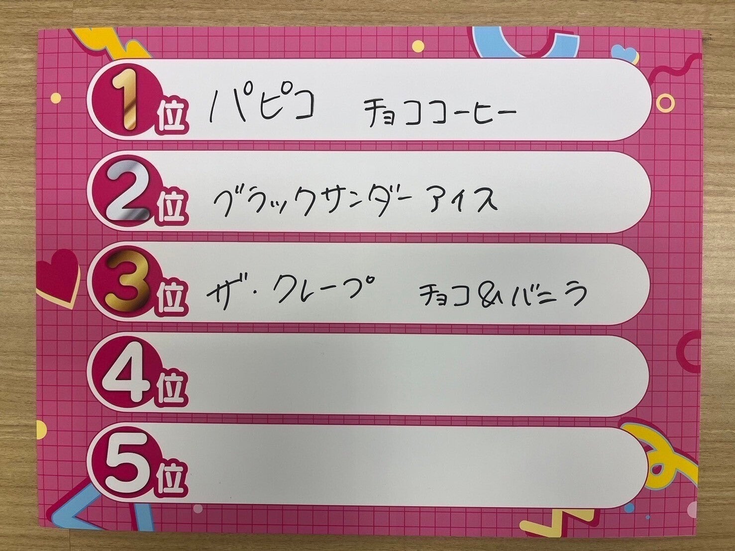1位:チョコモナカジャンボ2位:雪見だいふく