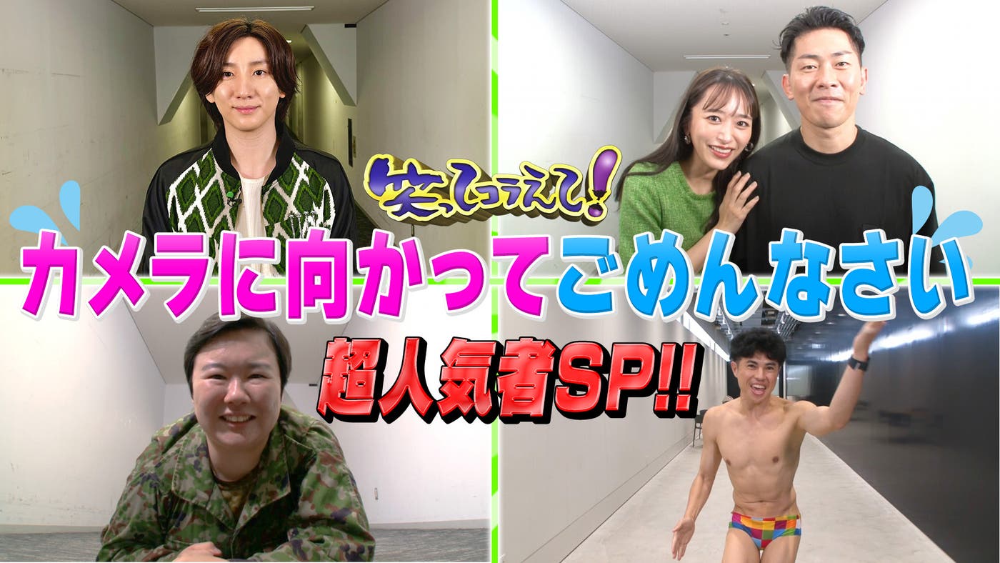 前週久々に復活し好評だった「カメラに向かってごめんなさい」がパワーアップ。今回は人気芸能人たちが続々登場する。京本は、あるメンバーの秘密をバラしてしまい謝罪。アンミカは夫・テディに対して「ごめんなさい」。毎朝我慢できずにアンミカがやってしまうことを夫からは「怖い」と怒られていると明かす。高嶋ちさ子は自らプロデュースする「12人のヴァイオリニスト」メンバーたちに発した暴言を謝罪。今まで言われたことがない暴言にショックを受けたメンバーは、その後ある変化が起こったと語る。木村昴はSNSの機能変更をきっかけにあることをしまくっていると告白。また、福原遥はドラマの撮影で、あるシーンになると必ずやってしまうことを謝る。小島よしおはオンラインサロンのまさかの結末を謝罪。ジャングルポケットの太田博久&近藤千尋夫妻は、娘の言葉をきっかけに、近藤が太田に黙ってやっていたことを謝ると、太田から「ありがとうね」と感謝の言葉が。長州力は30年前、娘をだましてある場所に連れて行ったことを謝る。そのほか、俳優、人気アーティスト、芸人たちが出演する。