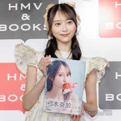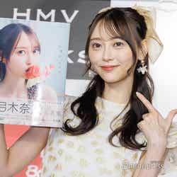 写真集の取材では定番の質問となっている「点数をつけるなら」という問いには「私でも見たことがないような、なだらか自分というか、すごく新しい発見もできたので、ヘアメイクさんだったり、ファッションをやってくださった方だったり、カメラマンさんだったり、感謝したいと思います」と回答。「数字で言うと」と続けて聞かれると、左手を腰に当て「まさか『数字で言うと』と言われるとは思っていなかったもので」と考え込んだ。その後、「お決まりの質問なので」という声に「そうですよね(笑)」と笑いつつ、「数字で言うと、じゃあ70点!」と高らかに宣言。「これは深い意味がありまして、『な(7)・お(0)』の『70』にしたいなと思います」と自身の名前との語呂合わせで採点し、「あとの30点は各々見た人が付け足して100点にしてください。加点式です」と説明した。